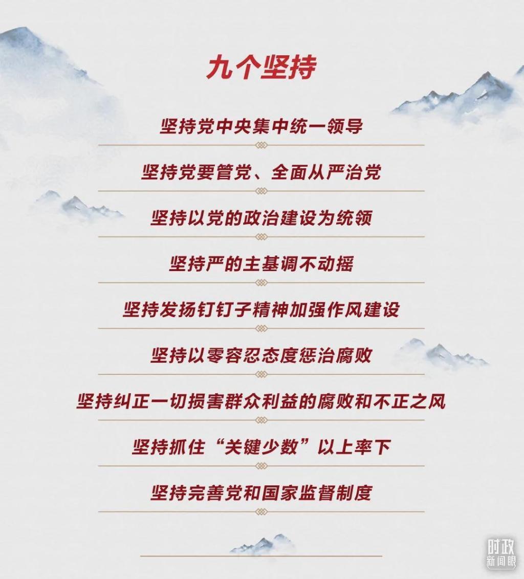 习近平总书记在会上还指出,党的十八大以来,我们深入推进管党治党实践创新、理论创新、制度创新,对建设什么样的长期执政的马克思主义政党、怎样建设长期执政的马克思主义政党的规律性认识达到新的高度。这就是“九个坚持”。