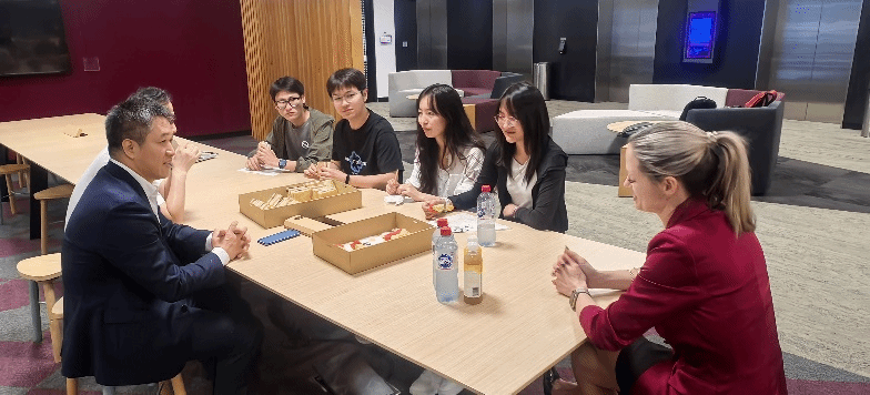 吕朝锋与同学们共进午餐,亲切交谈,悉心询问生活学习近况,表达了学校的深切关怀。他还鼓励同学们要充分把握交换学习的契机,汲取前沿知识,拓展国际视野,在学业上不断进取。4位同学汇报了他们近2个月在外方实验室的科研工作情况,感谢学校、学院提供的3个月出国交流机会,表示一定不辜负学校和学院的殷切期望。西悉尼大学国际处副处长Dr. Erin Erin Mackenzie陪同交流。