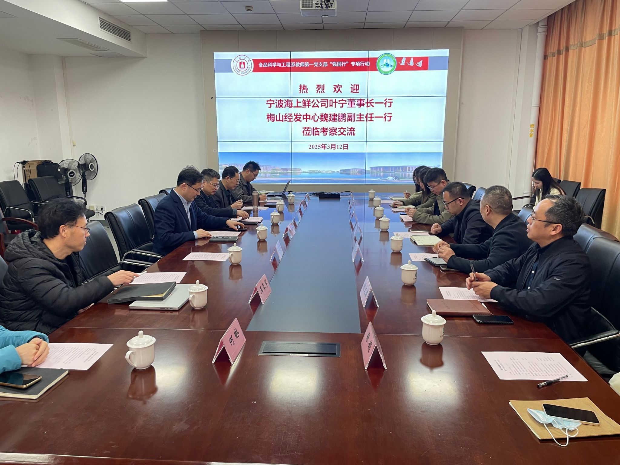 调研与交流。学院执行院长邵兴锋、党委书记龚文杰、水产领域教授等参加座谈会,双方围绕海洋食品开发、技术创新及校企合作等展开深入探讨。