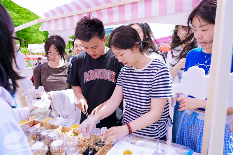 作为活动亮点之一,“烹”然心动特色食品展示区备受关注。学院教师团队依托专业科研成果,精心打造了一系列兼具健康理念与技术含量的实验性食品。从低脂高蛋白的创新糕点到富含益生菌的发酵饮品,每一款食品都凝结着食品科学与工程的前沿技术。工作人员通过现场讲解,详细介绍食品的原料配比、加工工艺及背后的营养学原理,让参与者在品尝美味的同时,深入了解“舌尖上的科学”,切身感受粮食生产与食品加工的产业链价值。