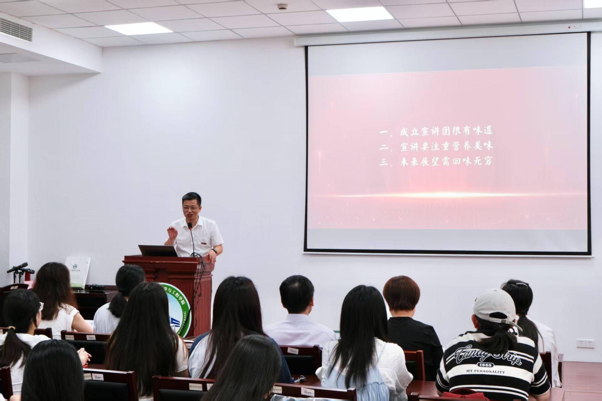 龚文杰书记在总结讲话中深入阐释了 “味道” 宣讲团成立的重要意义。他强调,宣讲团将积极深入一线,充分发挥大学在文化传承创新、思想价值引领方面的重要功能,以实际行动助力推进中国式现代化建设,积极响应提升全民科学素养、建设健康中国的国家战略。同时,对于青年学生的成长发展而言,宣讲团为成员搭建了理论学习与实践锻炼的优质平台,有助于其在实践中锤炼综合本领,坚定强国理想信念。