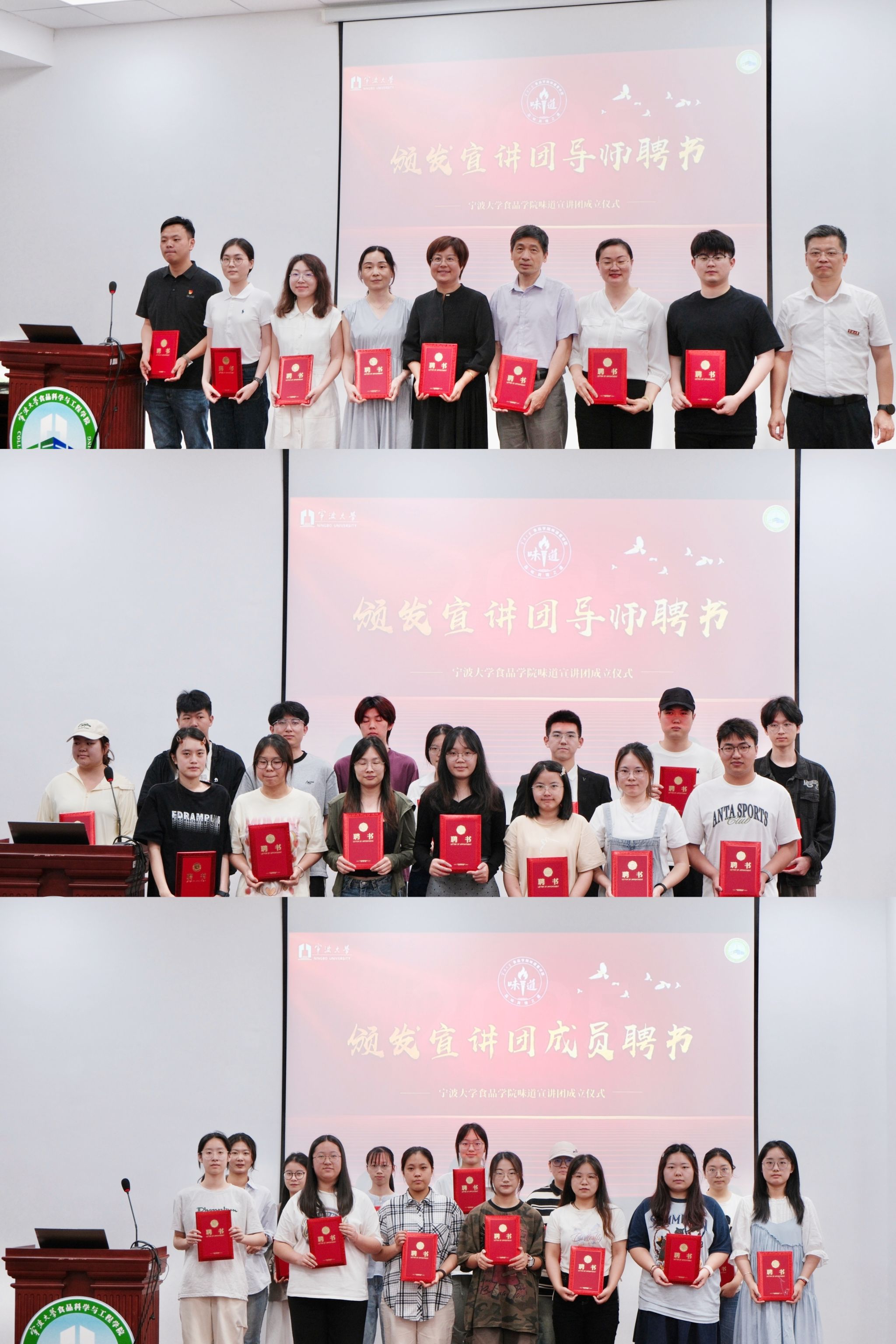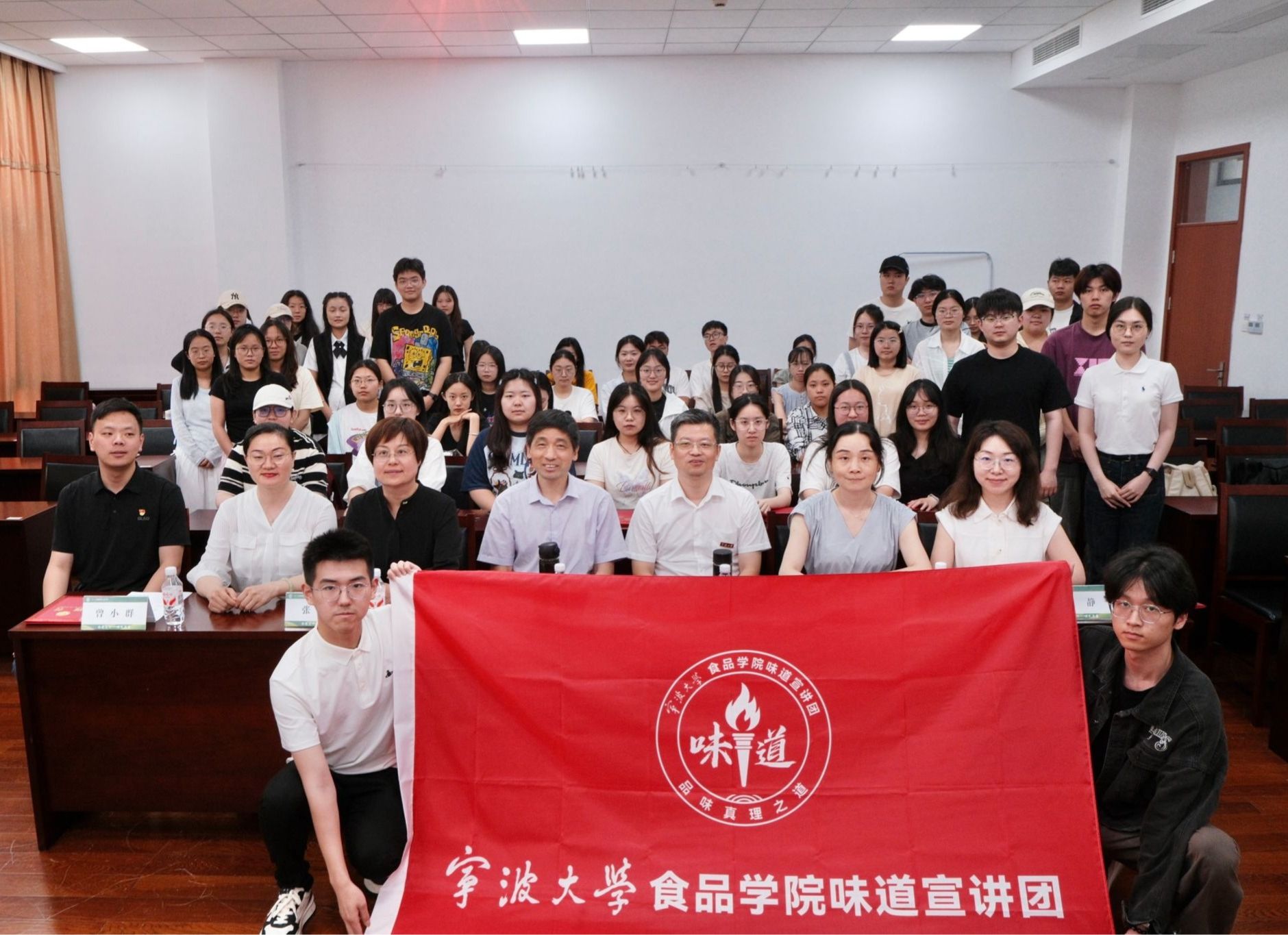 “味道” 宣讲团是在学院党委的统筹领导下,充分依托食品科学与工程学科专业优势精心组建的理论知识与科普传播团队。其命名寓意深远,既蕴含着 “品味真理之道” 的精神内核,又彰显了 “传播科学之味” 的实践导向。该宣讲团始终秉持 “品味真理之道,传播科学文化” 的核心理念,致力于通过多样化的形式,助力青少年学生和社会各界人士深入学习党的创新理论,系统了解食品领域的文化科普知识。首批宣讲团成员架构完备,由 29 名本硕学生组成梯队,11 名党政领导与专业教师组成导师团。