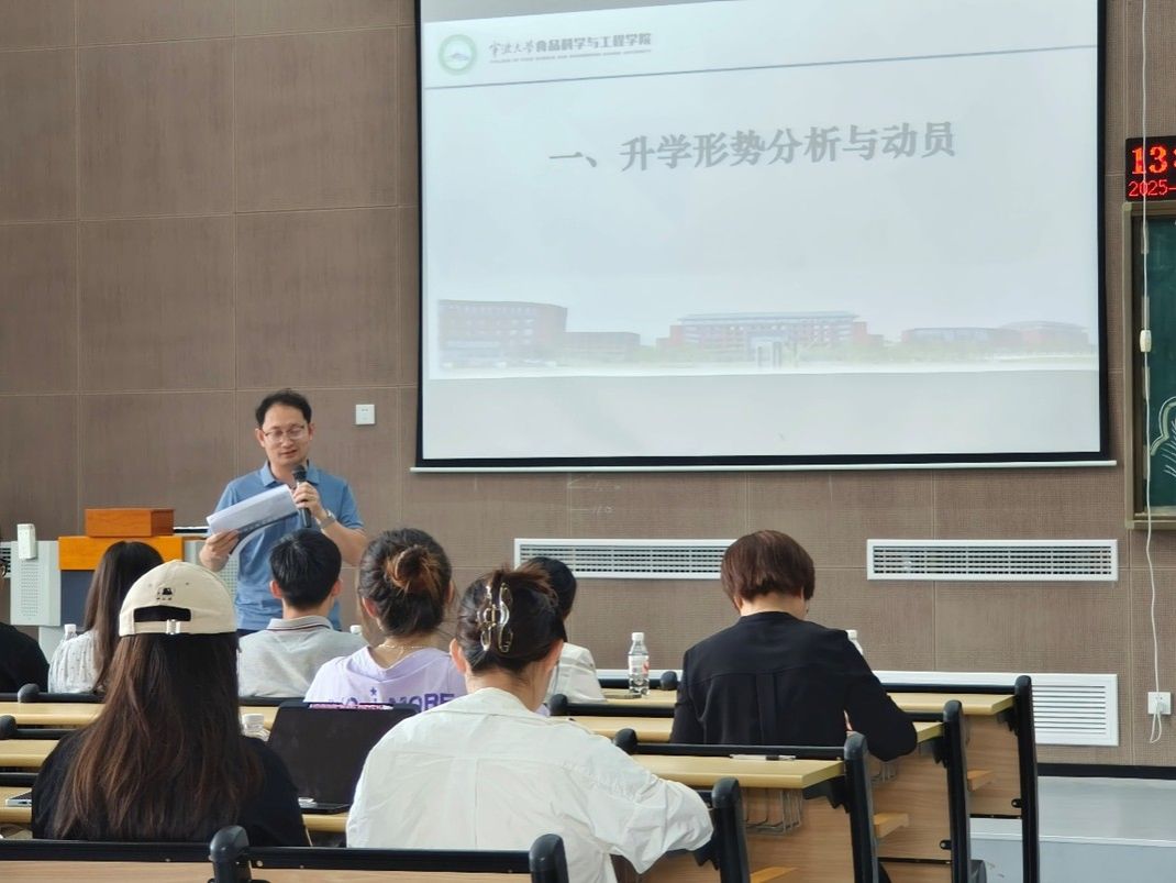 首先,学院教学副院长吴振,以详实的数据和深入的分析,为同学们揭开当前升学形势的面纱。他指出,随着研究生报考人数连年攀升,升学赛道的竞争愈发激烈。他强调,同学们在选择升学方向时,切不可盲目跟风,而应将自身兴趣与职业规划紧密结合,同时敏锐捕捉行业发展新趋势。他鼓励有意深造的同学,主动投身实验室项目,在科研实践中打磨专业能力,为未来的升学竞争增添有力筹码。