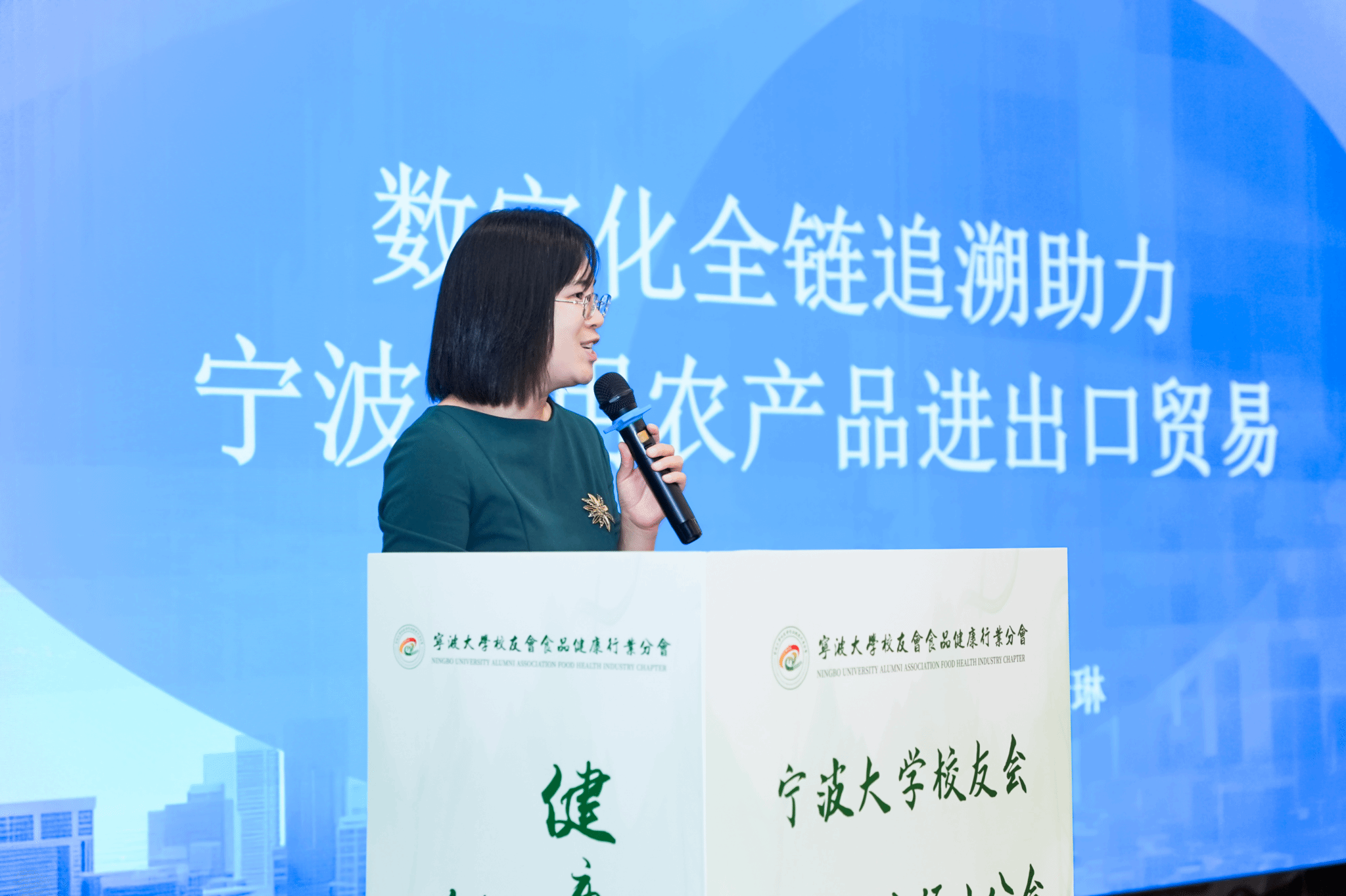 大会第二阶段举行了食品健康行业论坛第一讲。99 级校友、宁波市市场监管局食品流通管理处处长金琳带来《数字化全链追溯助力宁波食用农产品进出口贸易》的主题报告,分享了政府部门的最新政策与关注动态。