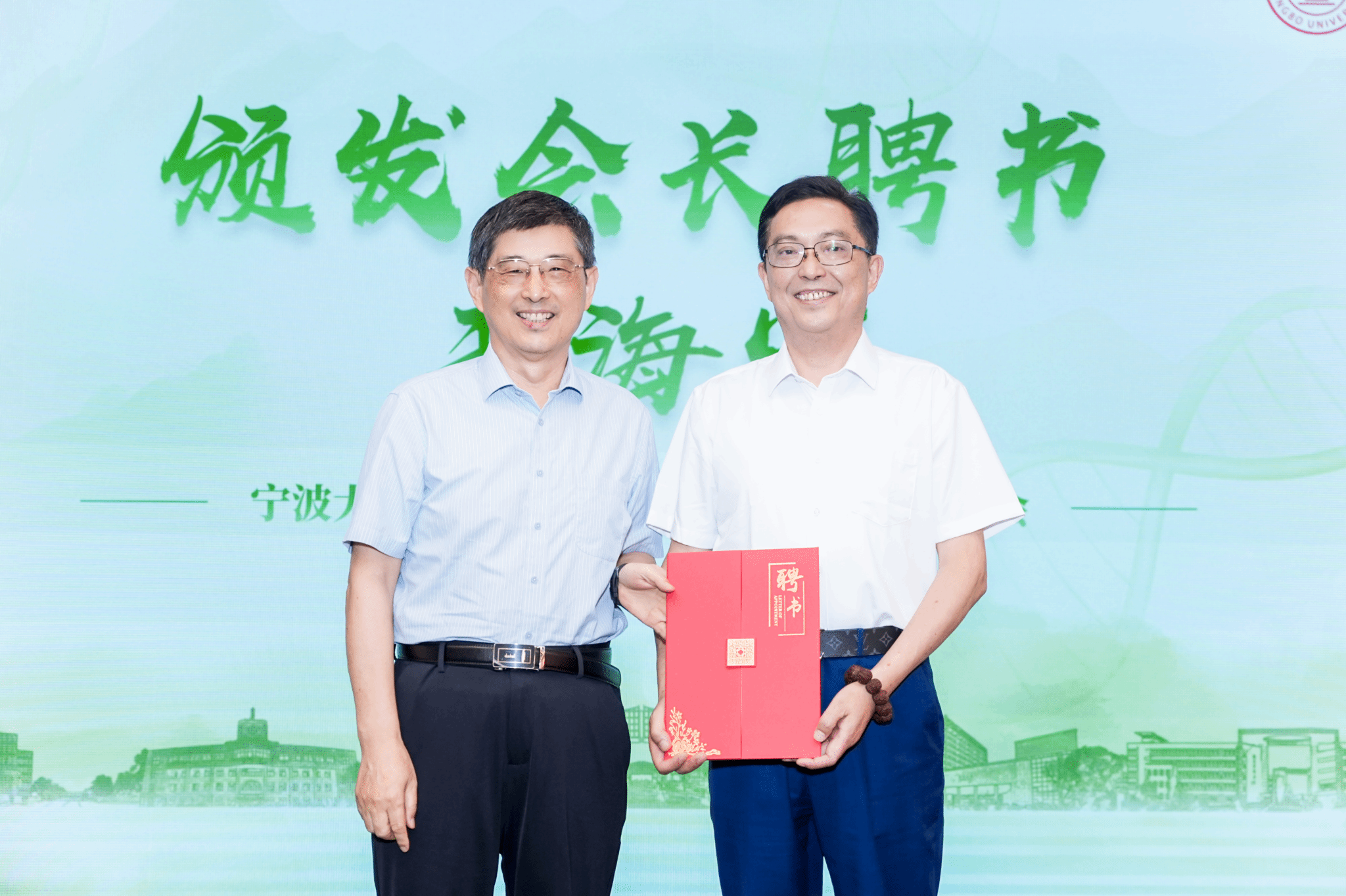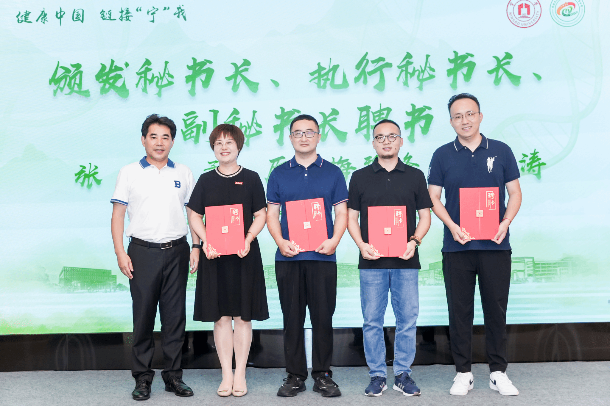 (校友总会副会长、秘书长胡宝华颁发秘书长、执行秘书长、副秘书长聘书)