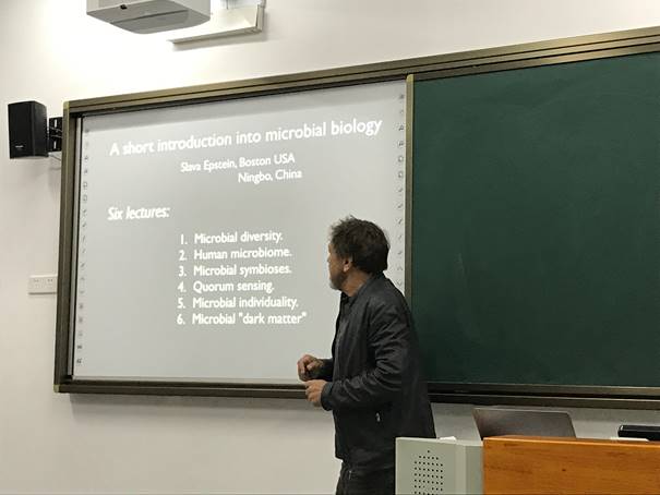 斯拉瓦·爱泼斯坦教授长期致力于新型微生物培养技术研究,未培养微生物资源挖掘以及新型抗生素研发。在国际上率先提出了开创性原位培养技术,大幅提高了微生物的可培养性;运用自主发明的新技术iChip开展新型抗生素药物研发,发现了全球近30年来首个新型抗生素候选药物Teixobactin。斯拉瓦·爱泼斯坦教授给学生详细讲解了微生物鉴定方法、人类微生物组及疾病、微生物间互作关系、群体感应、微生物适应环境的机理、微生物原位培养的原理和方法等。他具有扎实的微生物理论知识、教学思路清晰、重点突出,在讲课过程中,允许学生随时举手提问并耐心的回答学生的问题,PPT里展示了大量的图片,以便学生更好的理解。授课期间,学生认真听讲,开拓了视野。该mini课程得到了李达三叶耀珍伉俪李本俊海洋生物医药发展基金和海洋生物医药国家111引智基地的资助。