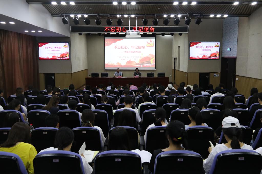 9月18日下午,食药学院在梅山校区泰昌祥报告厅召开“不忘初心、牢记使命”主题教育动员大会,学院党委书记陶娟主持会议并进行动员部署,学校第四巡回指导组组长王飞荣一行到会指导。
