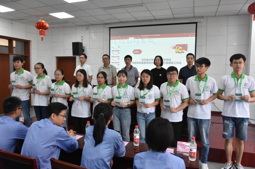 食品与药学学院党委书记陶娟,副院长邵兴锋,北仑区市场监管局梅山办事处党支部党员及食品与药学学院师生党员等100余人参加了成立仪式。