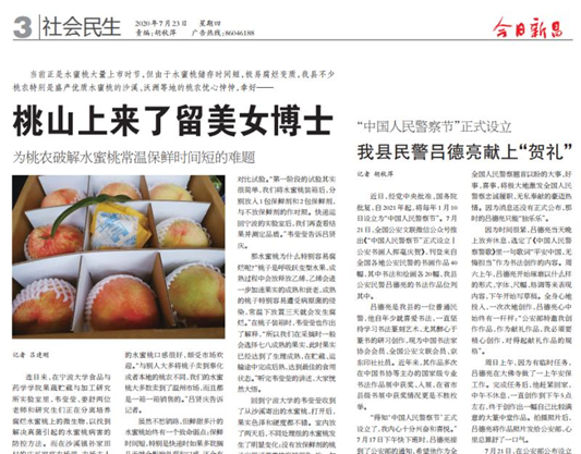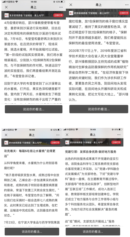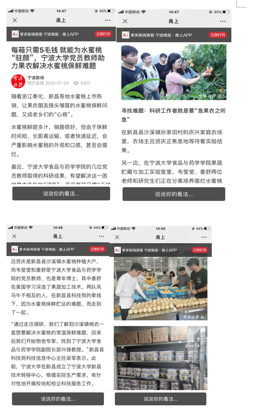 “这是一支将论文写在祖国的大地上的队伍”,也充分展现了党员科技工作者急果农之所急,认真钻研科研技术,为服务地方助力的先锋模范作用,已获得宁波日报、绍兴日报、今日新昌、现代今报(高校周刊)、宁波晚报(甬上APP)等多家媒体的重点报道。