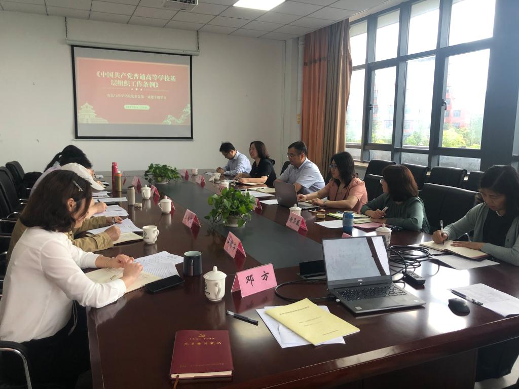 为深入学习贯彻《中国共产党普通高等学校基层组织工作条例》,更好的开展基层党建工作,5月26日下午,食品与药学学院党委理论中心组在梅山校区竺银康楼召开“学《条例》深入党史教育,强党建推进事业发展”为主题的理论学习中心组扩大学习会。副校长姚菊明参加了学习会,会议由院党委书记陶娟主持。