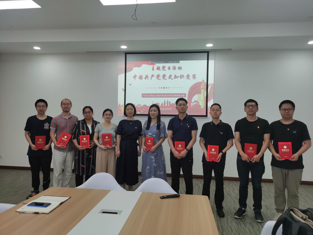 6月9日下午,为庆祝中国共产党建党100周年,学院海药系教工党支部全体党员在国际楼712室举办了一场“不忘初心、牢记使命”为主题的中国共产党党史知识竞赛。