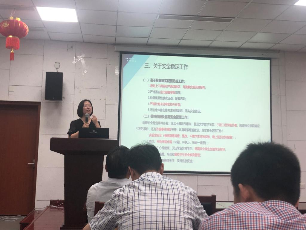 会上,陶娟先带领全体教职员工回顾了学院参加庆祝建党100周年合唱的视频,“把一切献给党,永远跟党走,热烈庆祝中国共产党建党一百周年”,在建党100周年之际,全体教师要担负起高质量内涵式发展的使命。同时,回顾了2021年上半年取得的成果简报,各分管领导就专业建设、科研、安全(心理问题、实验室安全、防诈骗工作疫情防疫、假期安全)、学生工作、纪委工作、研究生工作、党委工作等做了部署。