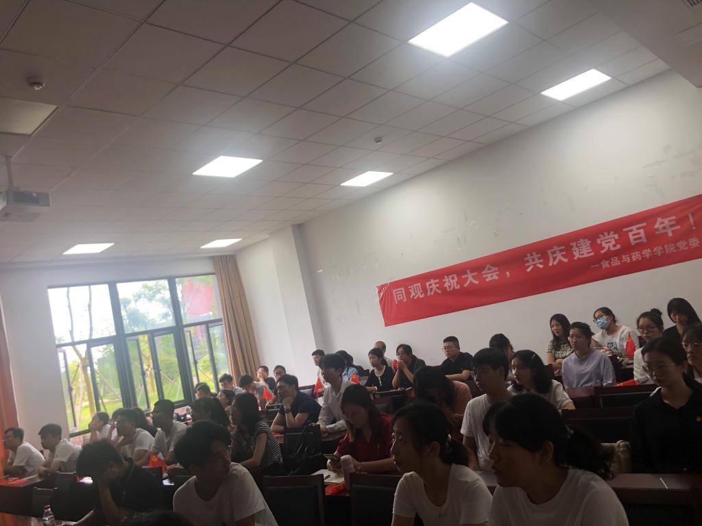 2021年7月1日上午8时,食品与药学学院党委组织师生党员在梅山校庆竺银康楼122会议室集中收看中央庆祝中国共产党成立100周年大会直播。