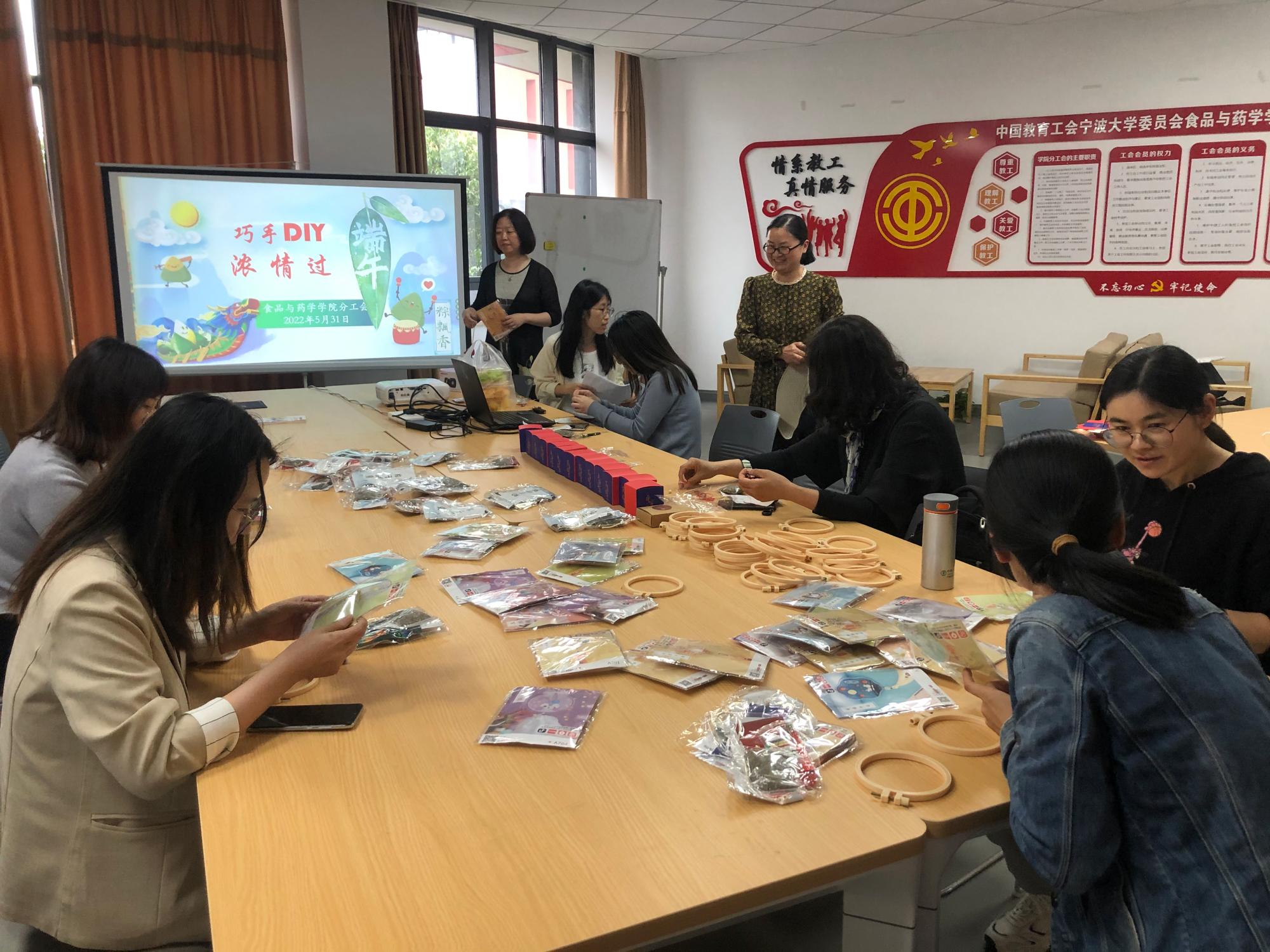 端午到来之际,为结合新时代条件传承和弘扬中华优秀传统文化,传承和弘扬中华美学精神,丰富学院女教工的业余文化生活,5月31日下午,食品与药学学院分工会举办“巧手做手工,浓情过端午”DIY手工制作活动。