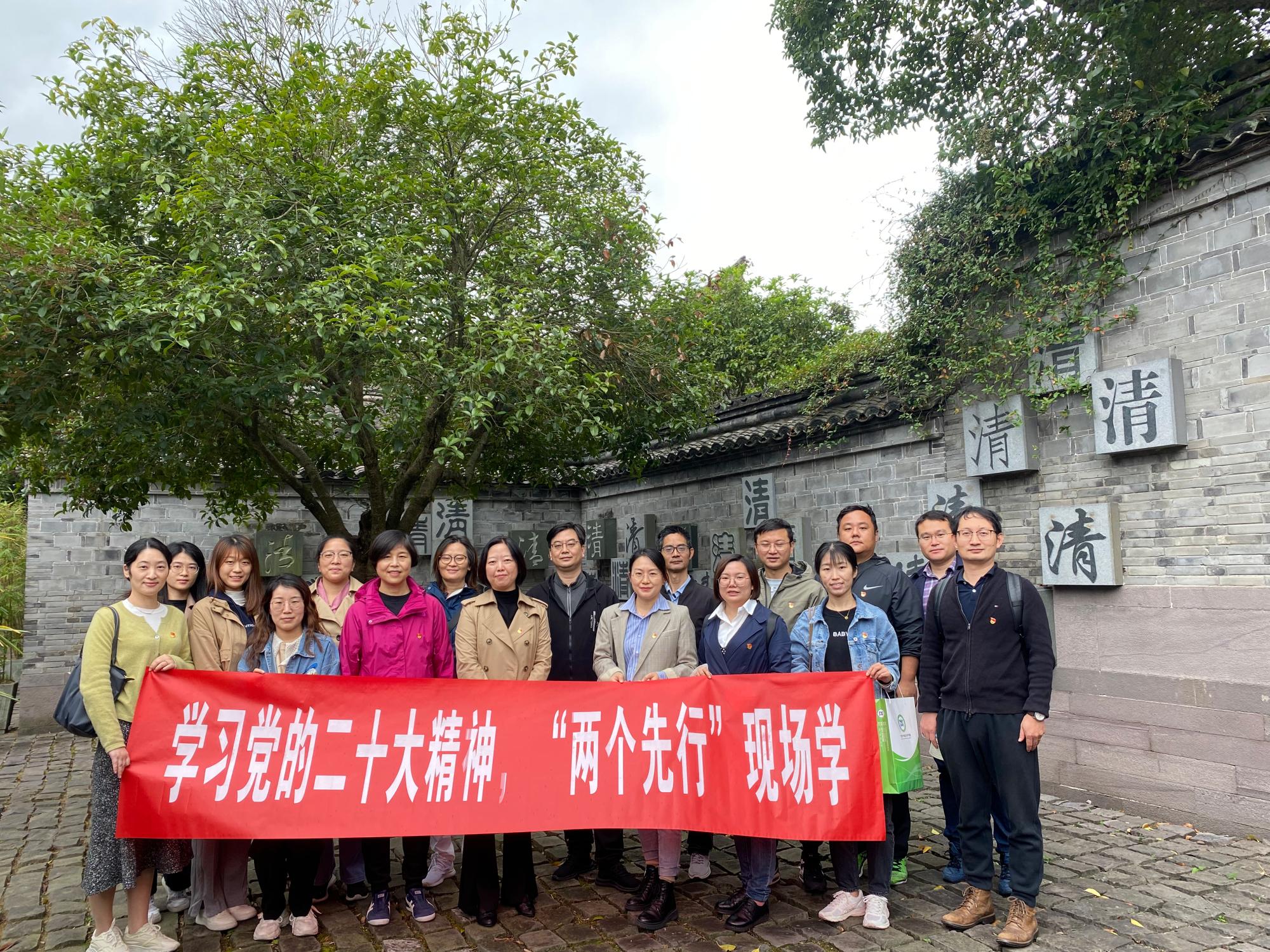 11月4日,食品与药学学院党委组织教职工党员赴江北慈城县衙清风园和冯定纪念馆,开展“学习党的二十大精神,‘两个先行’现场学”党员教育活动,共有20余名教师党员代表参加。