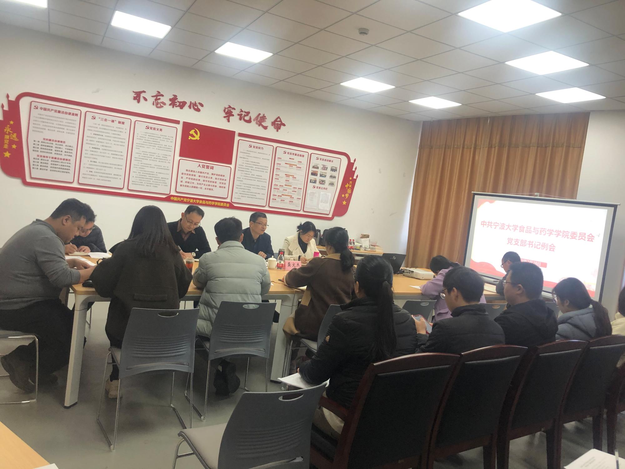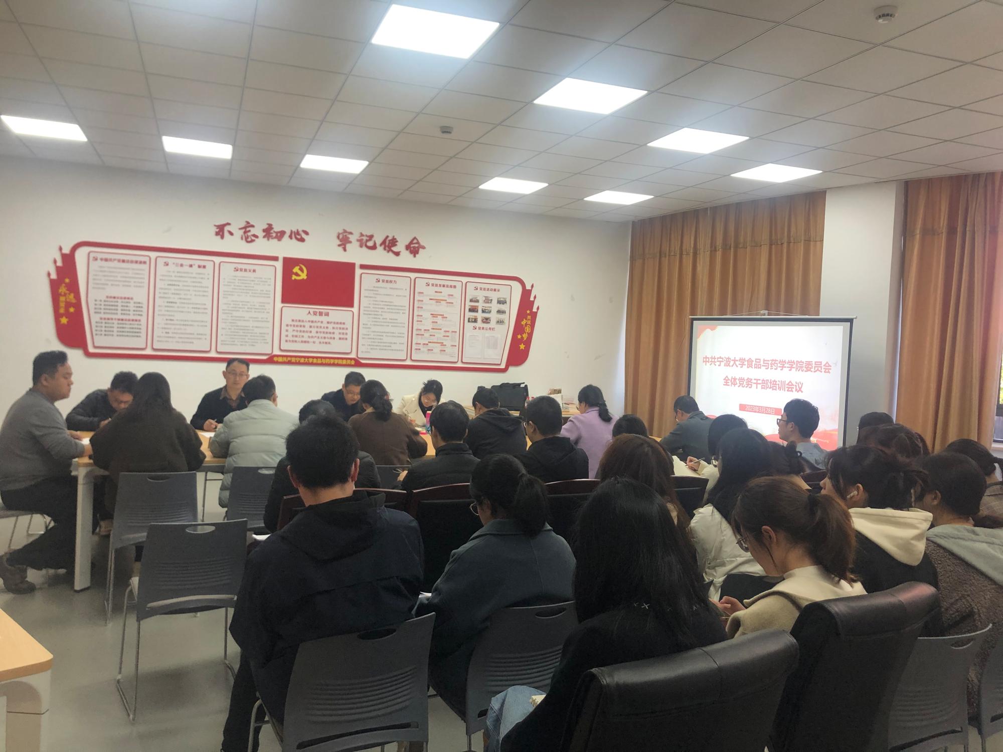 组织开展了“高举旗帜创未来、健康中国时耀行”学习贯彻二十大精神系列活动。3月28日上午,食品与药学学院党委在梅山校区竺银康楼201党员之家召开了新学期党支部书记例会暨党务干部培训会。会议由党委书记龚文杰主持,党委副书记谢果凰、全体师生党支部书记和支部委员参加了会议。