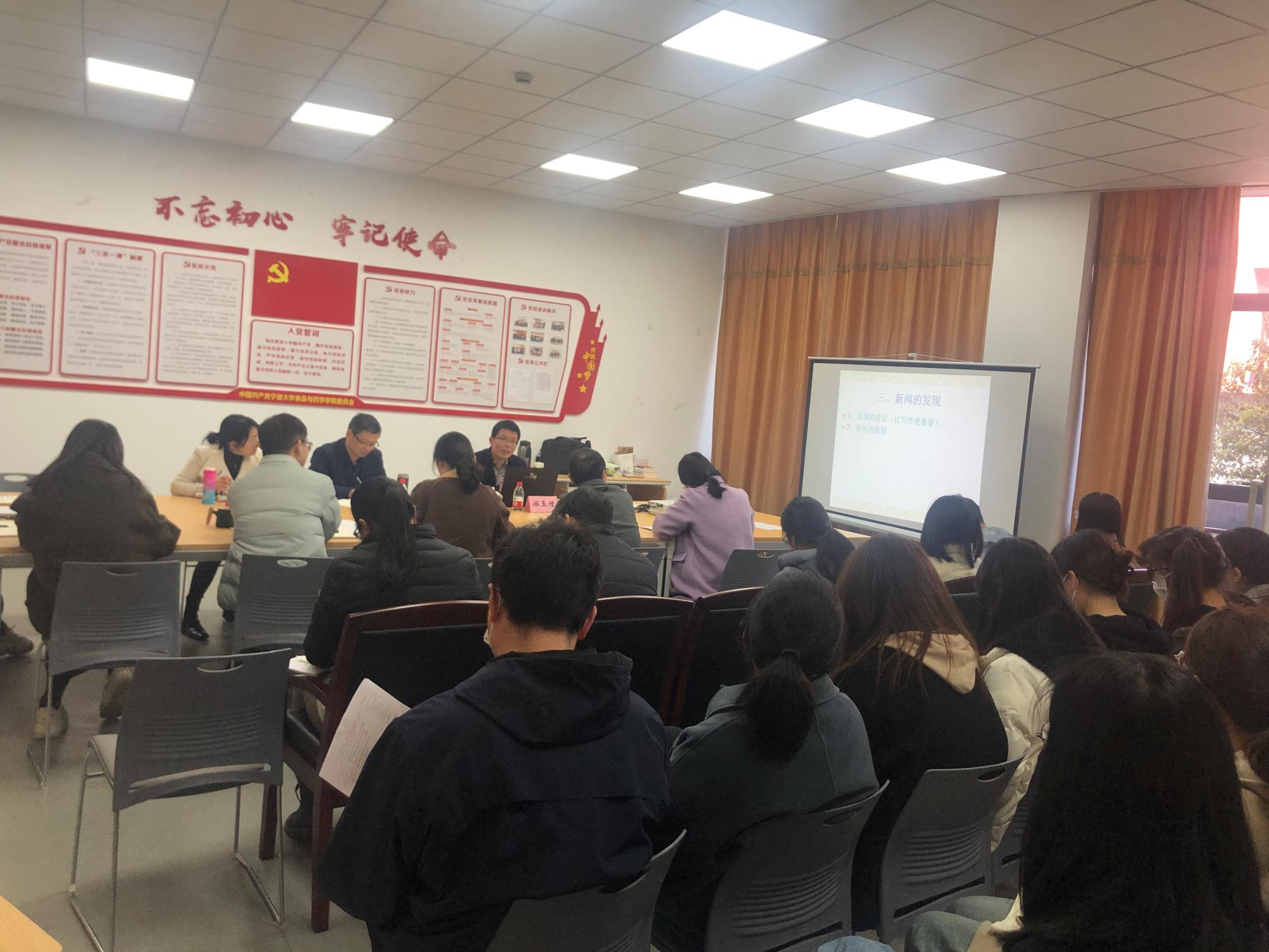 为加强党务干部的信息宣传能力,学院邀请了校党委宣传部游玉增为大家做信息宣传工作的专项培训。游玉增从校园新闻报道原则、选择策划、优质传播内容生产、舆情应对与媒介情商等方面,交流了信息宣传工作经验与心得,也指出了容易出现的问题。食科系党支部书记许凤表示,经过宣传培训后,对于新闻的发现意识有了更深的了解,比如要培养善于发现新闻的眼光,对于学院教育教学、学生工作中的亮点和特点,要及时、准确、全面报道,善于挖掘生活中动人的细节,发掘出具有宣传价值的素材。