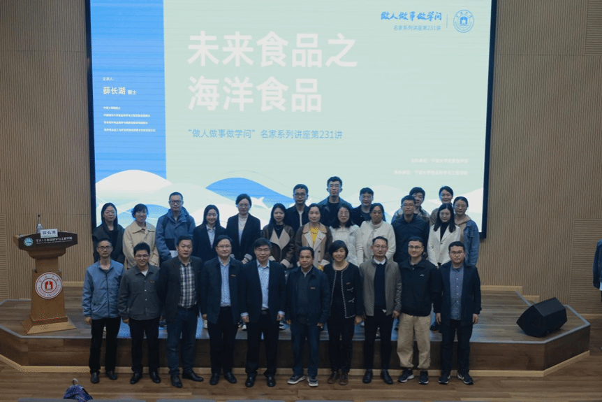 执行院长邵兴锋主持。讲座以《未来食品之海洋食品》为主题,围绕蓝色食品开发现状、水产品营养作用与意义、蓝色食品开发趋势三个方面,结合其自身科研经历和心得体会,深入浅出地展开,鼓励青年师生奋力投身科技强国建设。