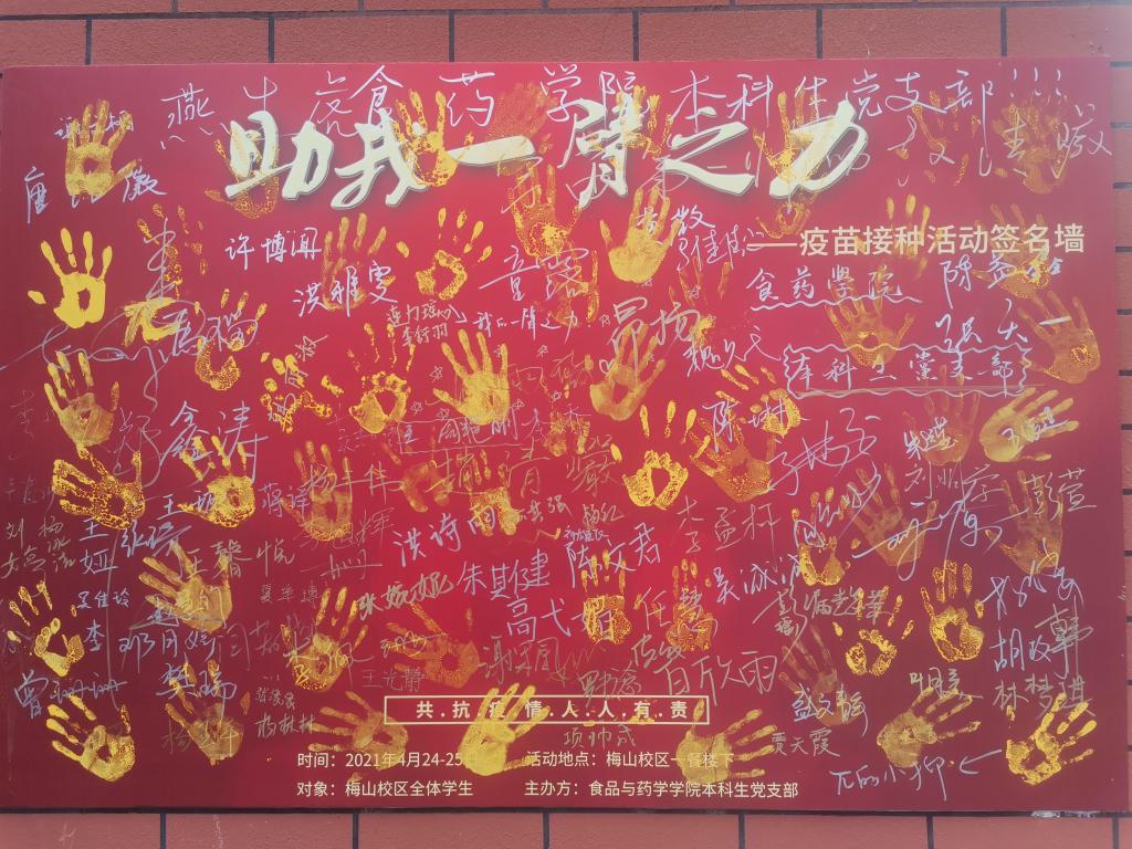 本次活动主要由防疫知识竞答和疫苗接种签名活动两部分组成。期间,支部党员向同学们科普了新冠疫苗接种的相关知识,呼吁更多同学响应国家的号召,实现了大家从“要我接种”到“我要接种”的观念转变,为防疫体系的建设贡献了一臂之力。此外,支部号召已接种疫苗的同学签名、拍手印留念,以示对新冠疫苗的信心。支部党员大力宣传新冠防疫科普知识,发挥新青年“勇担当,爱奉献”的先锋模范作用,当好疫情防控、抗疫宣传和疫苗接种的科普宣传人。25日晚,支部协助梅山校区组织师生集中前往北仑滨海新城医院进行疫苗接种,召集多名志愿者协助现场工作,顺利完成疫苗接种工作。直至目前,食品与药学学院学生疫苗接种比例位列全校第一。