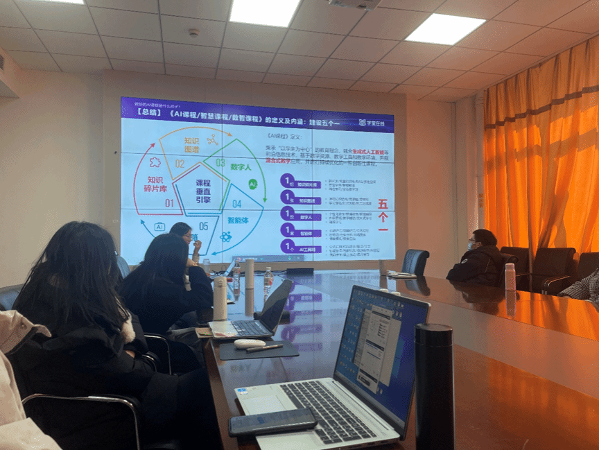 同时,焦老师也深入阐述雨课堂如何助力人工智能赋能教育的内涵与应用方案。借助人工智能技术,雨课堂可深度剖析学生学习轨迹,为教师定制专属教学策略,实现精准施教;同时,为学生推送贴合个人需求的学习资料,开启个性化学习之旅。教师们认真聆听、积极互动,不时记录要点,就实践应用中的困惑与焦老师深入交流。