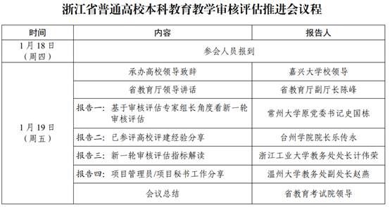 浙江省教育考试院将于2024年1月19日上午8:30以线下会议和线上直播方式召开全省普通高校本科教育教学审核评估推进会,请我校各部门、各学院自行组织收看。