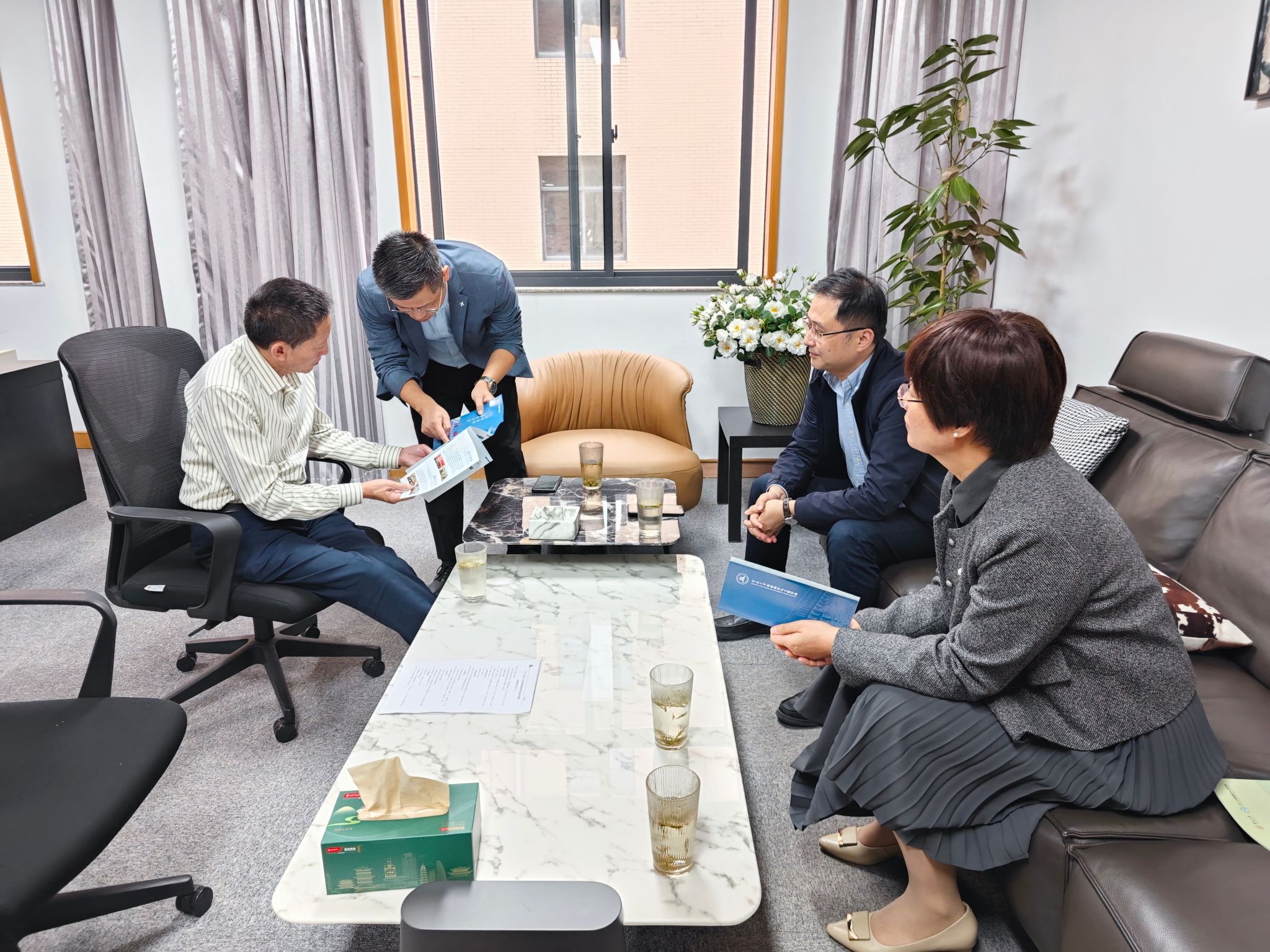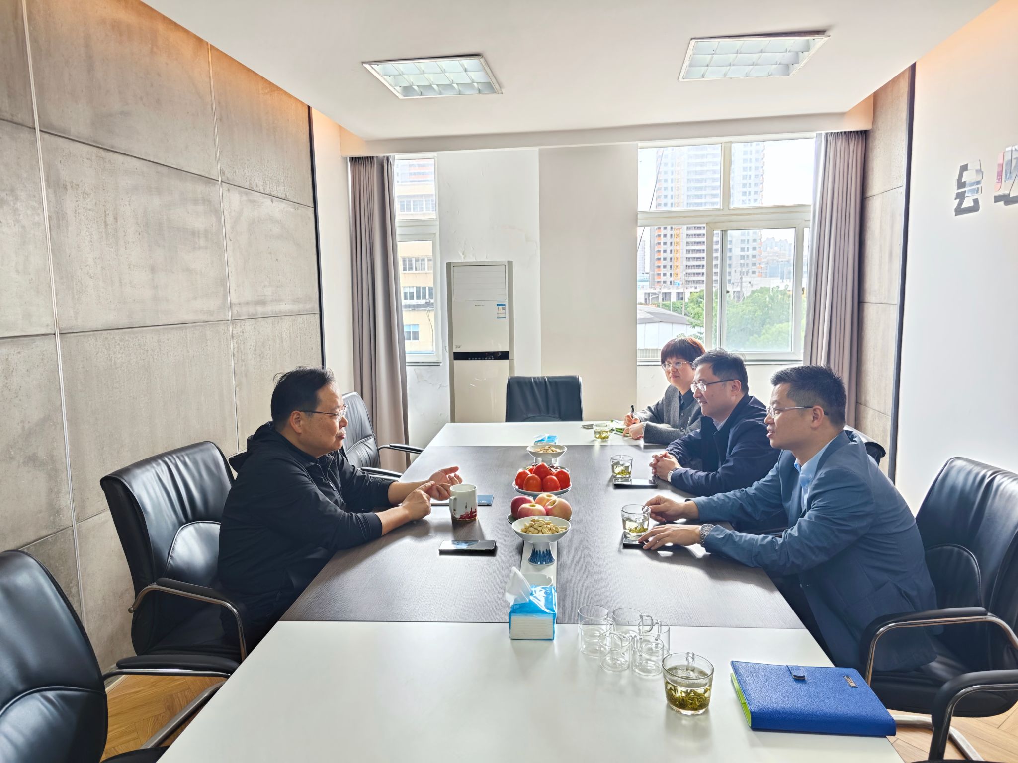 奉化校友会会长毛孟杰热情迎接学院领导们的到来。毛孟杰会长介绍了公司的主要业务和发展规划。在交流过程中,双方就校友企业与学院之间的合作模式、行业校友会建设等方面进行了深入探讨。