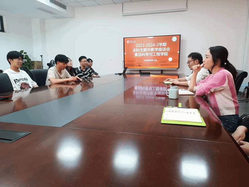 于5月15日下午,召开本科生期中教学检查师生座谈会。学院教学副院长吴振、食品科学与工程专业系主任许凤、教师代表杜启伟以及10多名班级学生代表参加座谈。