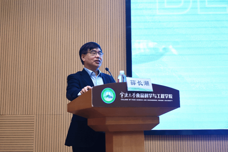 执行院长邵兴锋主持。讲座以《未来食品之海洋食品》为主题,围绕蓝色食品开发现状、水产品营养作用与意义、蓝色食品开发趋势三个方面,结合其自身科研经历和心得体会,深入浅出地展开,鼓励青年师生奋力投身科技强国建设。
