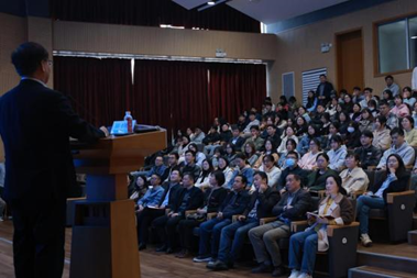 领导班子和师生参与接待,数百位师生聆听讲座。