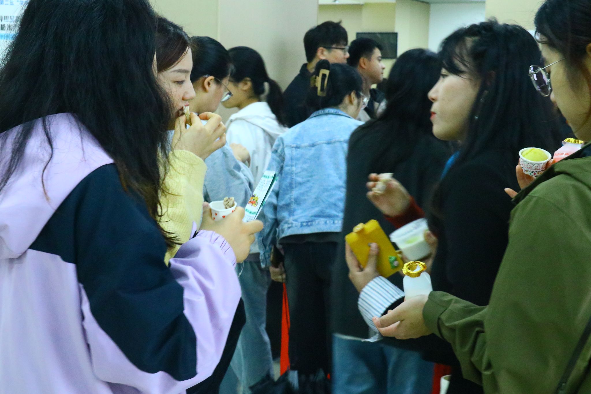 活动现场热闹非凡,学生们参与热情高涨。一款款色香味俱佳的美食被端上品鉴台,吸引了众多师生驻足品尝。大家纷纷赞叹这些美食不仅口感独特、味道鲜美,更承载着学生们对知识的深刻理解和创新实践的丰硕成果。