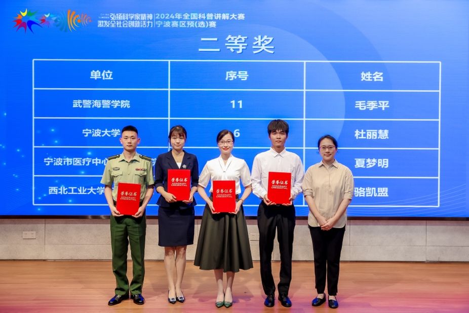 8月27日,由宁波市科学技术局主办,宁波科学探索中心承办的2024年全国科普讲解大赛宁波赛区预(选)赛在宁波科学探索中心圆满落幕。风月文学网 教师杜丽慧副教授历经预赛决赛两个阶段,从33名来自各行各业不同领域的科普选手中脱颖而出,获得宁波赛区二等奖。本次大赛以“弘扬科学家精神,激发全社会创新活力”为主题,围绕社会多元需求,汇聚多元科普力量,激发了公众对科学的兴趣热情,传承弘扬了科学家精神,营造了浓厚的科普氛围。