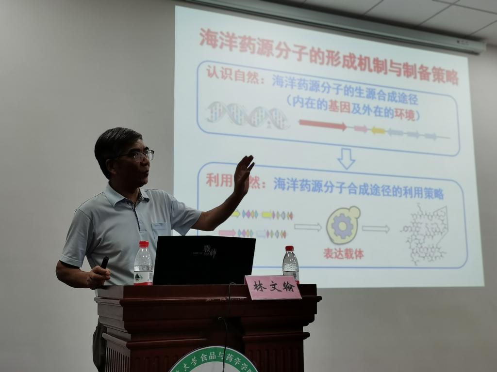 The meeting was presided over by Professor He Shan,he introduced Professor Lin Wenhan's situation to the participating faculties and students. Lin Wenhan is a professor at Peking University School of Pharmaceutical Sciences, chairman of the Marine Medicine Professional Committee of the Chinese Pharmaceutical Association, and one of the recognized leaders in the field of marine medicine. He has an important influence in related fields. As the chief scientist, he has undertaken many major projects such as the 863 Program of the Ministry of Science and Technology, he has rich experience in organizing and undertaking major national science and technology projects. In addition, he has long served as an expert in the compilation, consultation, and review of major projects in the field of marine biotechnology and marine medicine related to the Ministry of Science and Technology and the National Natural Science Foundation of China. Professor Lin Wenhan was appointed as Bao Yugang Professor of our college, which will bring us new breakthroughs to the development of marine medicine. Professor Lin Wenhan gave an academic report on marine medicine to the participating faculties and students. The faculties and students actively participated and the scene was enthusiastic.