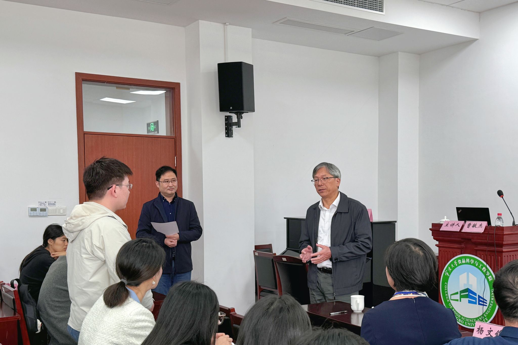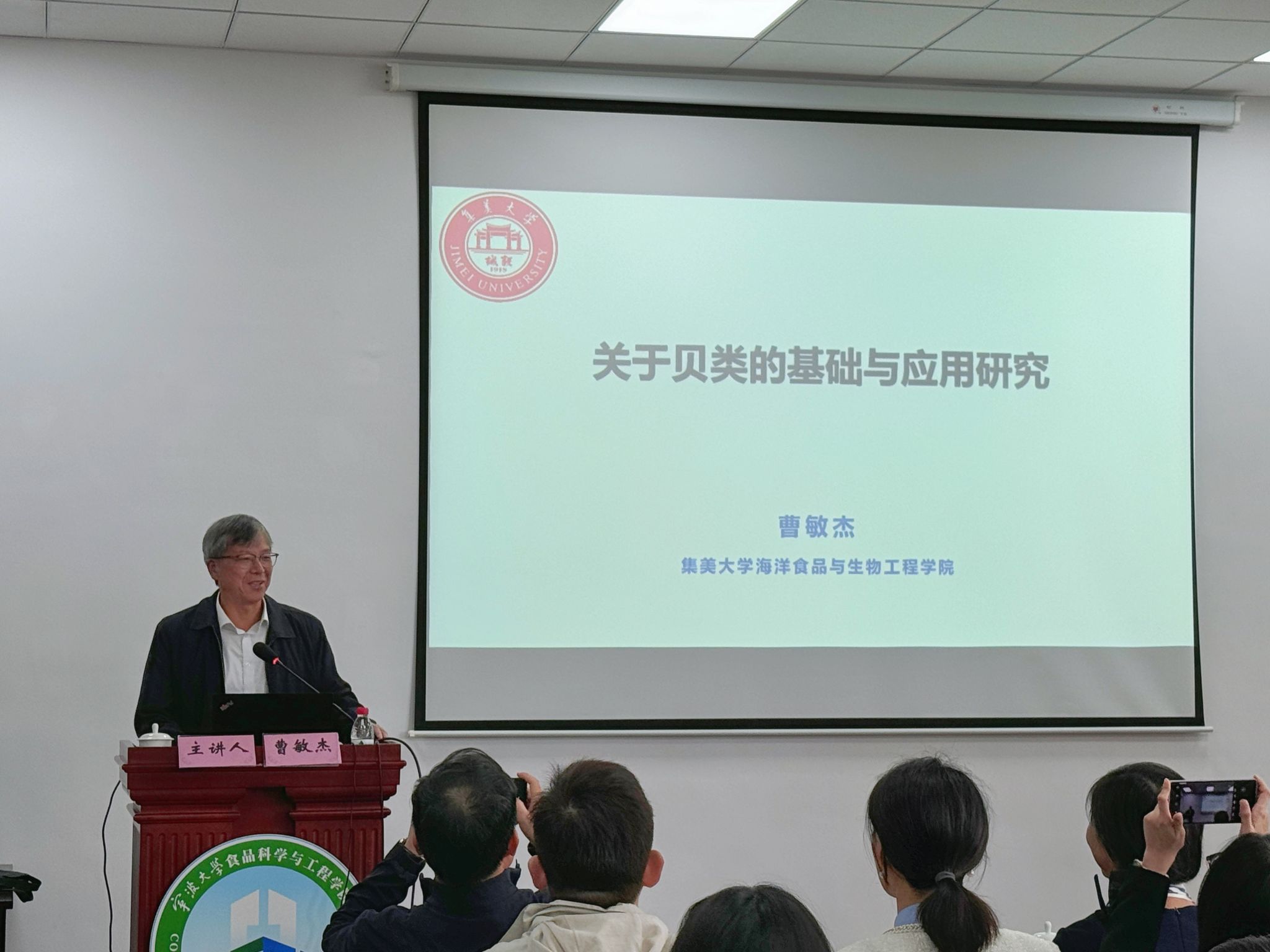指导并作了题为《关于贝类的基础和应用研究》的学术讲座。学院执行院长邵兴锋教授主持讲座,学院教师和研究生共70余人参加了此次讲座。