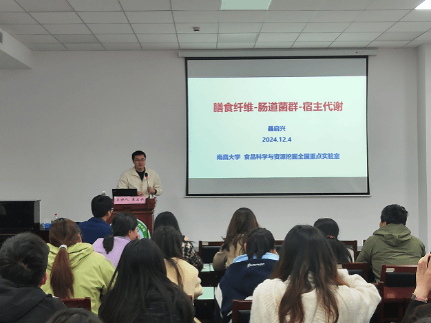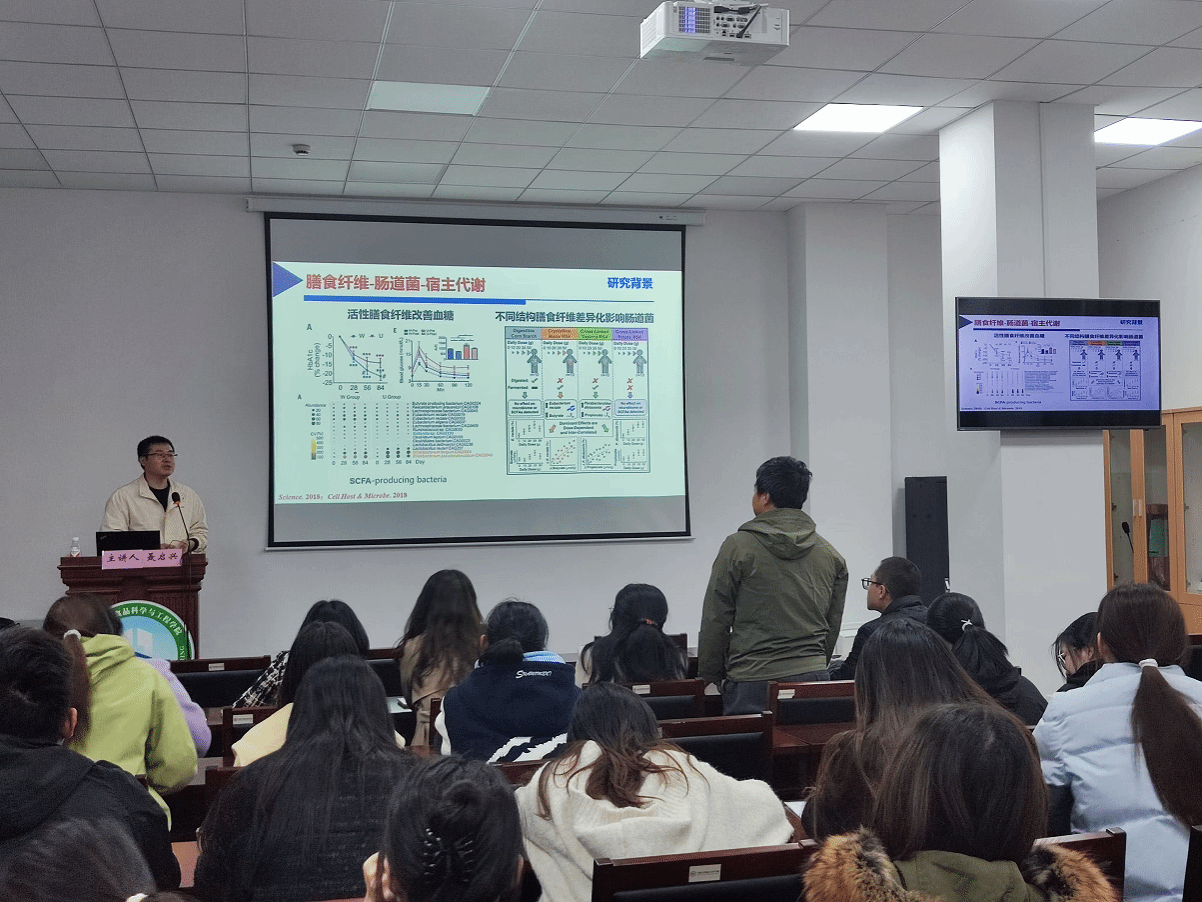 指导并作了题为《肠道菌群与宿主代谢》的学术讲座。专项工作负责人黄涛老师主持讲座,学院教师和研究生共60余人参加了此次讲座。