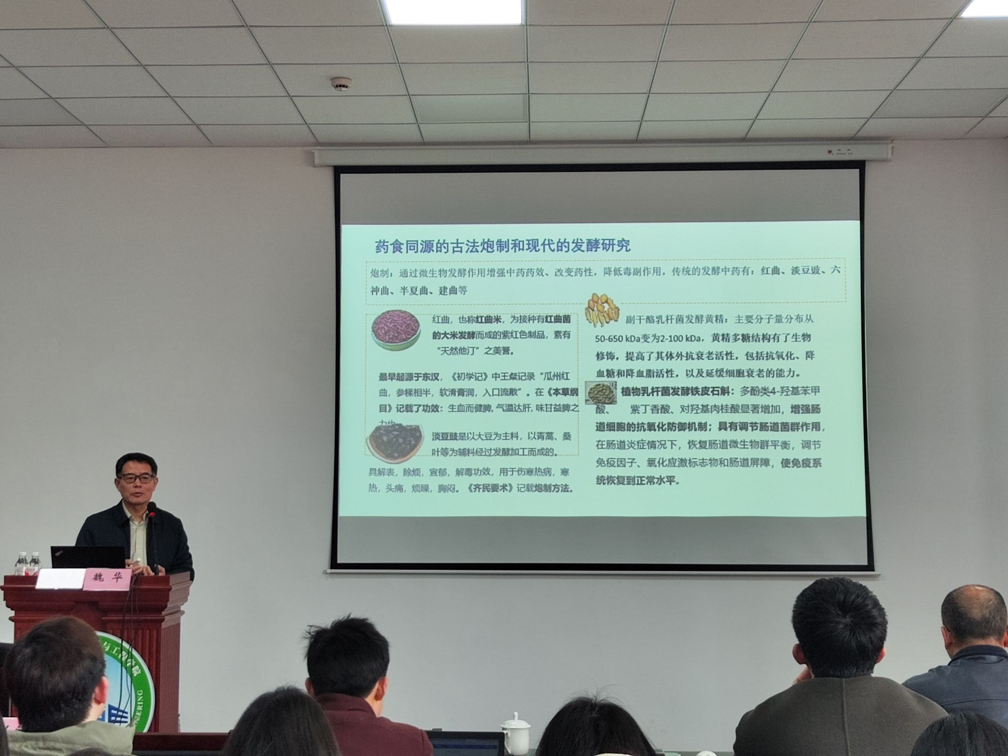 指导并作了题为《益生菌、药食同源与大健康的思考与探索》的学术讲座。学院执行院长邵兴锋教授主持讲座,学院教师和研究生共80余人参加了此次讲座。