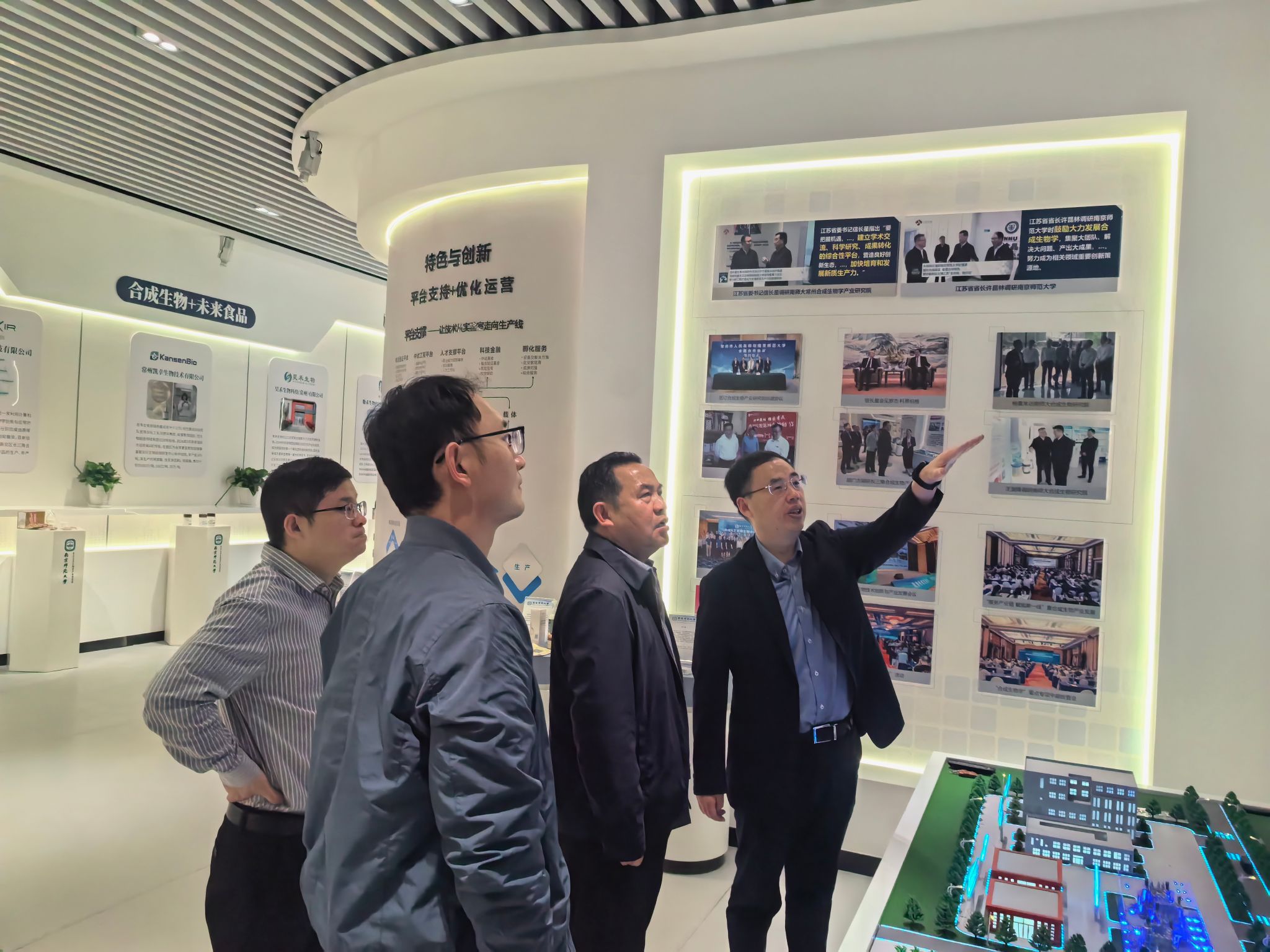 4月10日,调研组首先参观了常州国家高新区创新展示中心,全面考察了常州市区域创新驱动发展战略及实施成效。随后,特派团前往南京师范大学合成生物学产业研究院,深入了解南师大在合成生物领域相关研究成果,双方就如何深化校地合作、优化创新要素配置、构建"政产学"协同体系等议题,展开了富有建设性的探讨交流。当日,调研团队还参观了中淼(常州)安全技术研究院在食品安全检测技术领域的创新实践和应用成果。