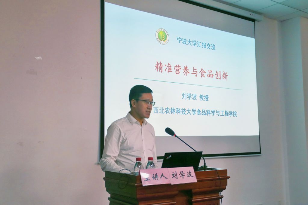 新时代,向未来,值此宁大建校37周年暨三校合并27周年学术活动之际,西北农林科技大学校长助理、国际合作交流处处长、教育部“新世纪优秀人才、科技部“中青年科技创新领军人才”刘学波教授应邀于2023年10月30日上午为食品与药学学院师生作了题为《精准营养与食品创新》的学术报告。报告会由食品与药学学院执行院长邵兴锋教授主持,共100多位师生聆听了本次报告。