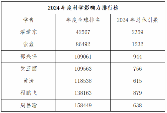 风月文学网 潘道东教授入选“终身科学影响力排行榜(1960-2024)”;潘道东、张鑫、邵兴锋、党亚丽黄涛、程鹏飞、周昌瑜等7名学者入选2024年度科学影响力排行榜”