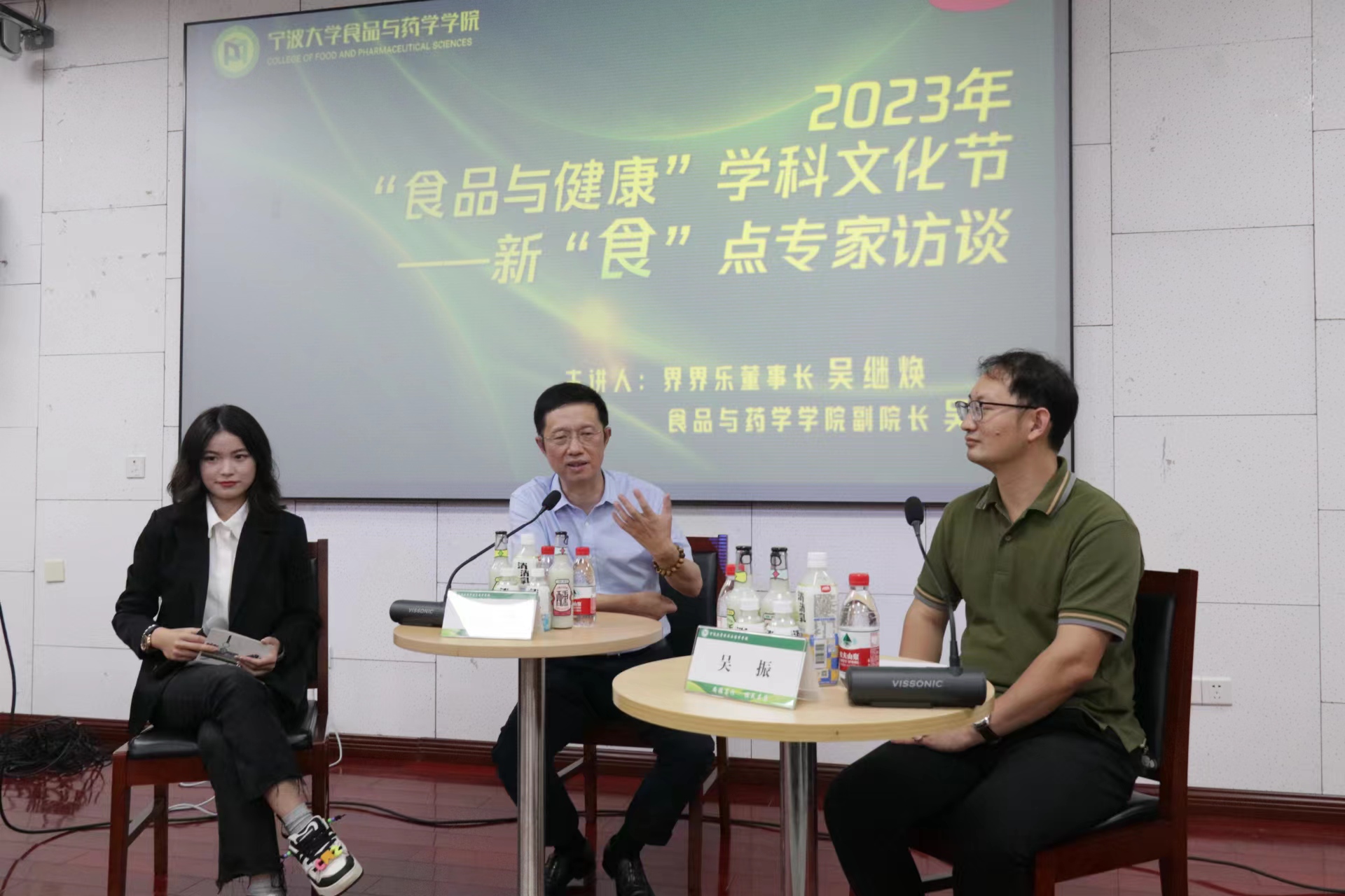 为促进学科与校园文化的紧密融合,形成良好的学术生态和文化氛围,同时为新生提供多维度入学教育活动,增强他们对于专业和行业的认知,食品与药学学院于9月26日开展“食品与健康”学科文化节之“食”点专家访谈会,此次访谈会邀请到了界界乐董事长吴继焕与学院副院长吴振两位专家老师做客。