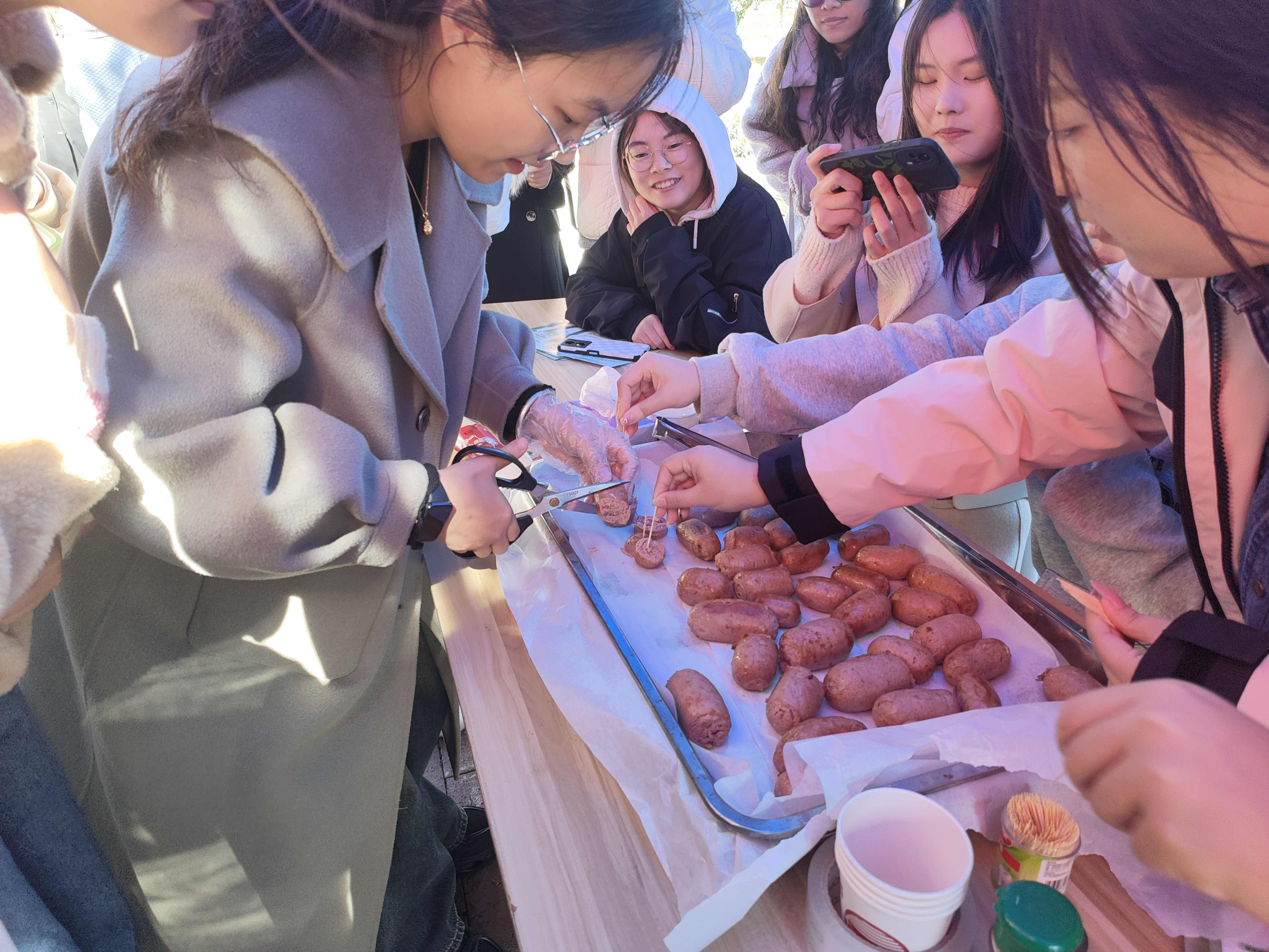 为进一步发挥劳动育人功能,食品与药学学院于11月18日开展了“香肠你来尝,健康我来倡”的劳动教育课,学生们在第一课堂完成香肠制作,随后采用党日活动的形式开展美食品尝、健康宣传和劳动教育活动。此次活动旨在紧密结合学科和专业特点,引导学生崇尚、热爱、尊重劳动,同时通过实际操作加深对专业知识的理解。