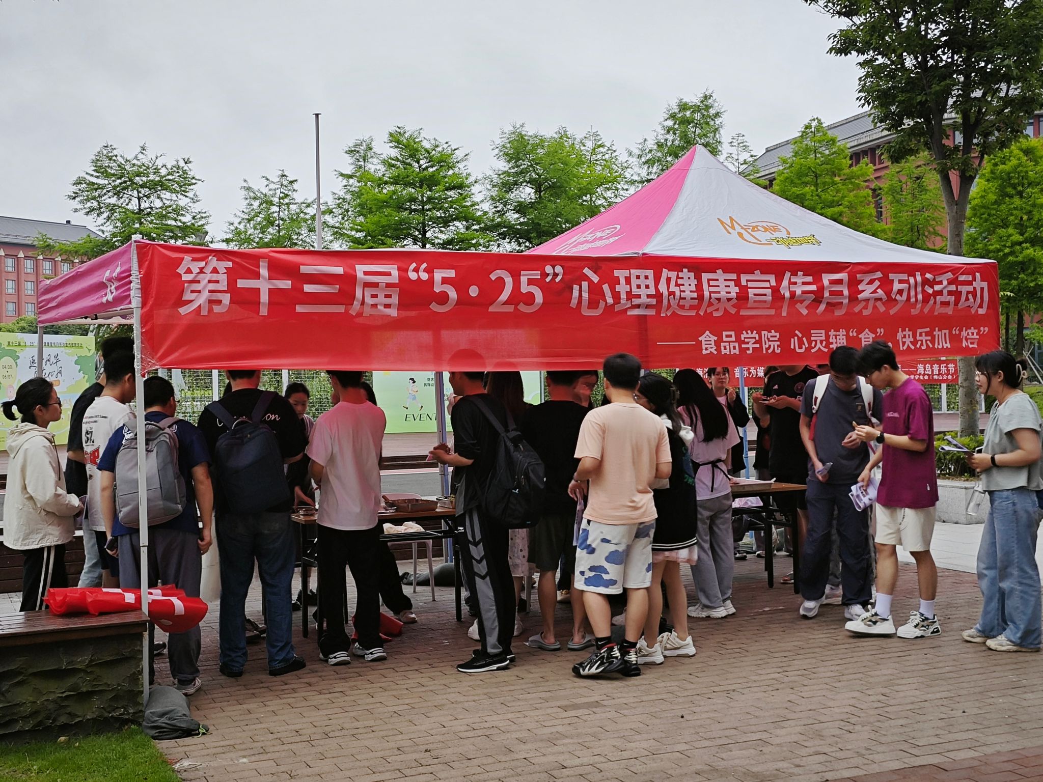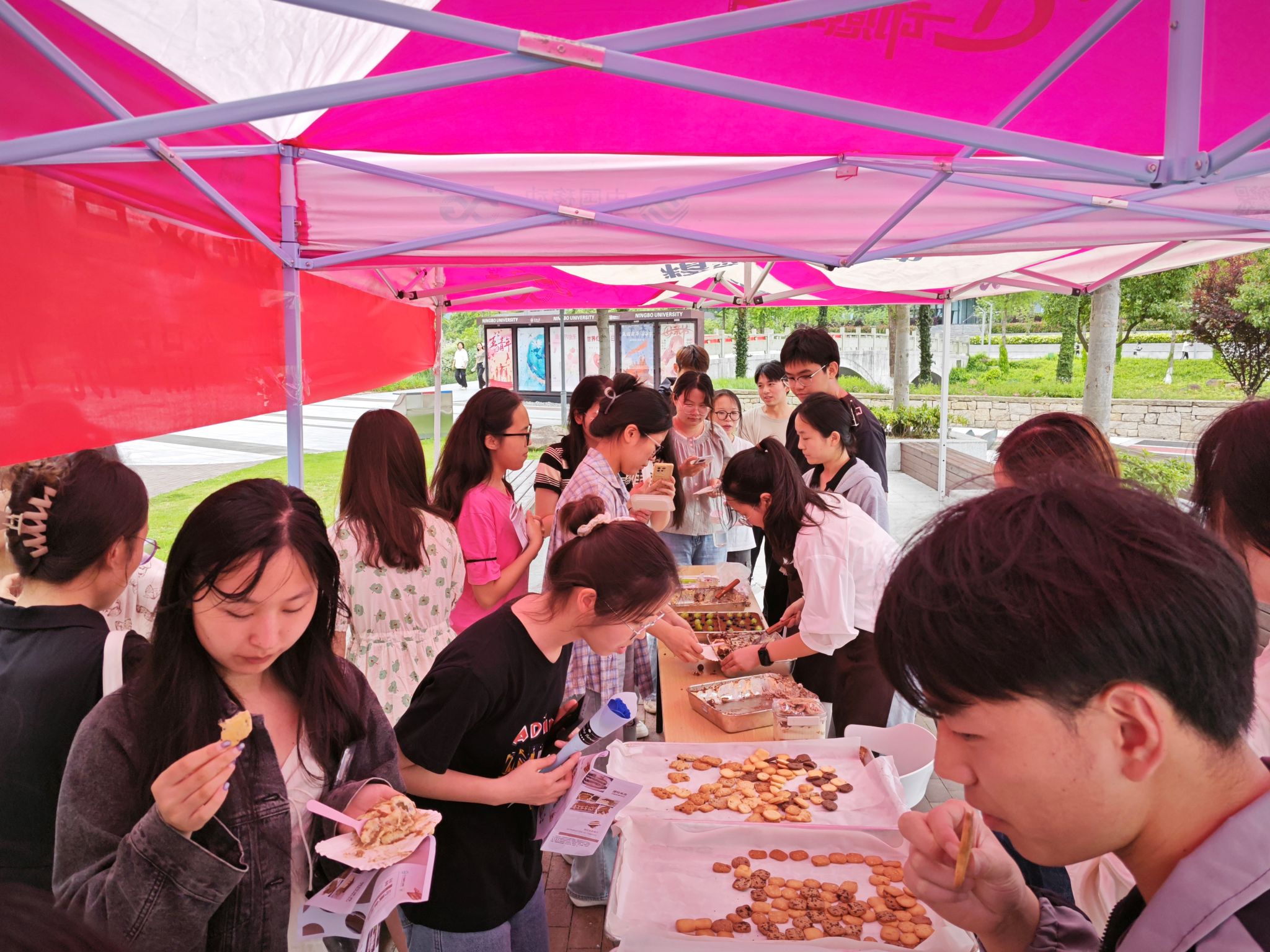 当满屋的香气弥漫开来,大家亲手制作的美味也一一呈现在眼前。提拉米苏的浓郁与曲奇饼干的酥脆相得益彰,每一口都是甜蜜与幸福的滋味。同学们还将这些亲手制作的烘焙美食带到了餐厅楼下的摊位,与更多同学分享这份加“焙”的快乐。本科生党支部也借此机会为大家科普心理健康、膳食健康相关知识,让同学们在享受美味的同时,也能关注自己的身心健康。
