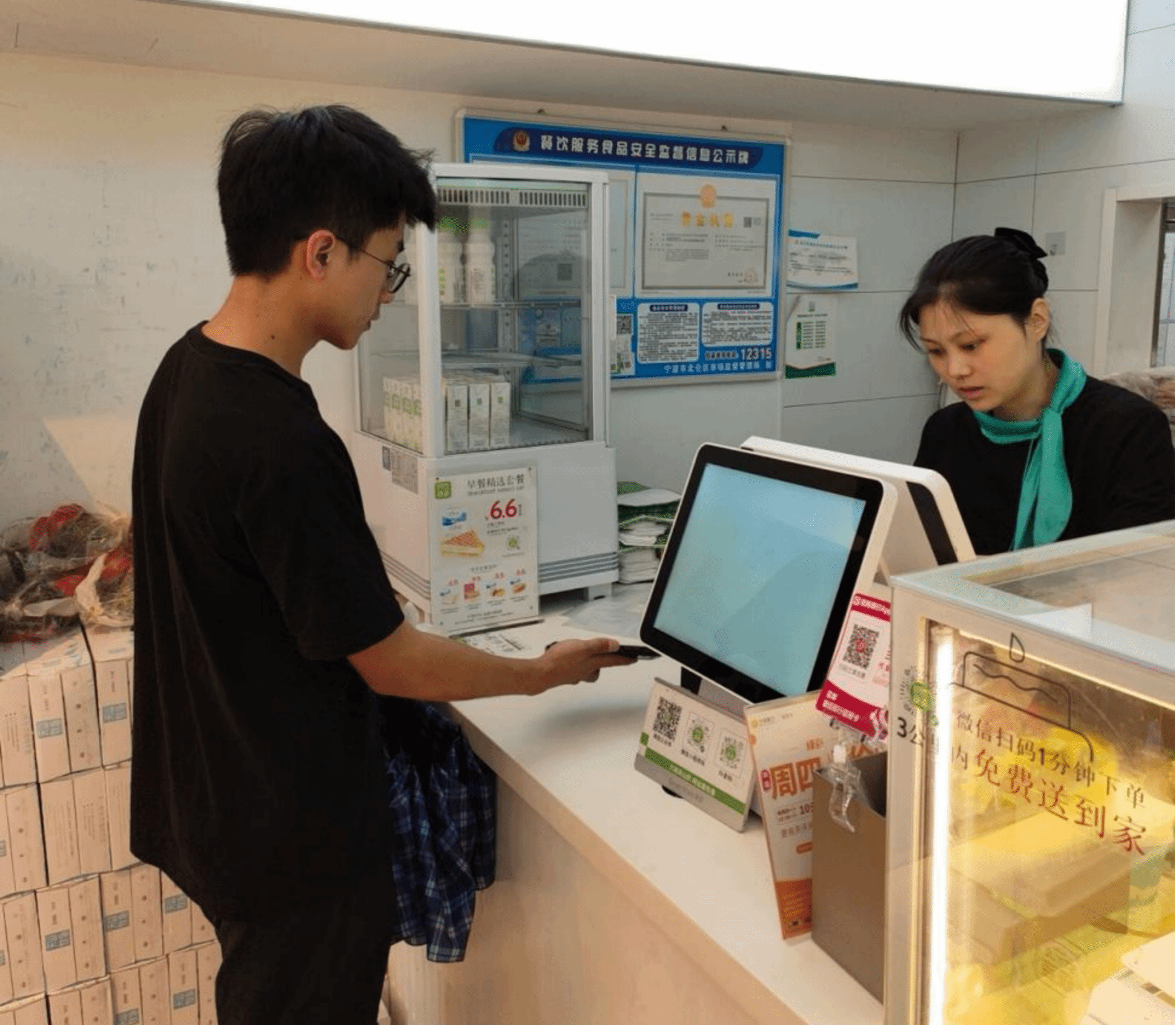 图8 小组成员与绿姿收银员交谈