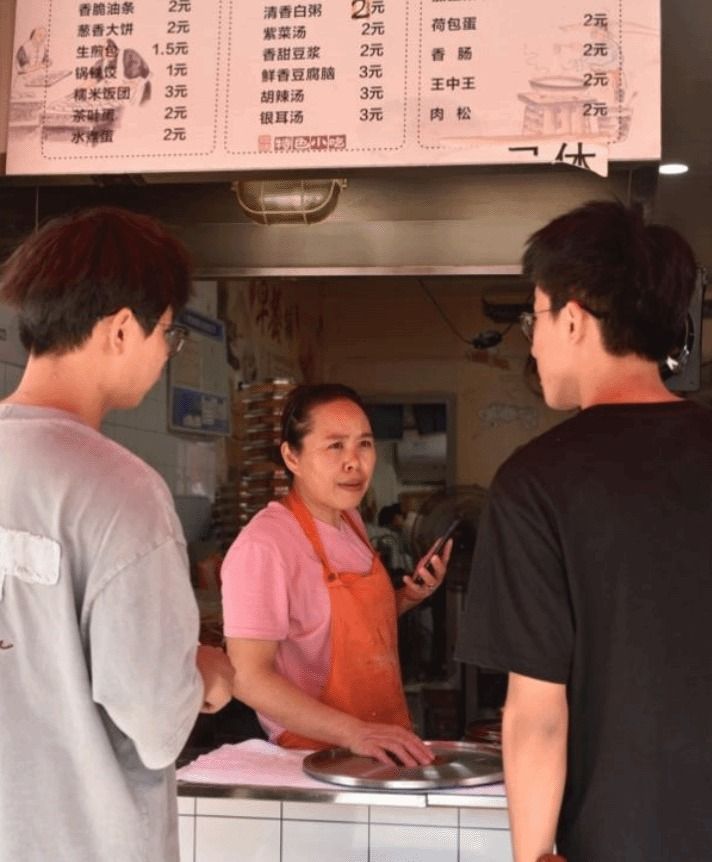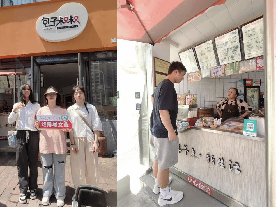 在走访过程中,早餐店商家向调研小组成员介绍店内最畅销的早餐及饮品,如酱香饼、红糖馒头、鸡蛋饼、油条、豆浆、绿豆汤等日常早餐品类。