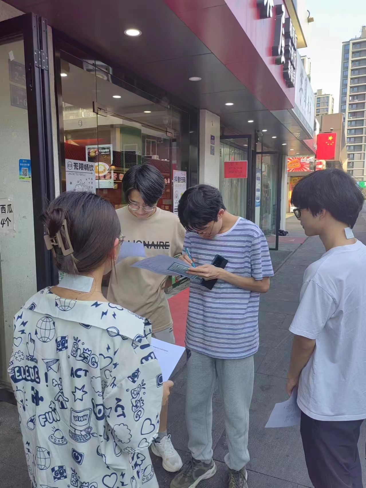 图2 实践队在宁大步行街分发调查问卷