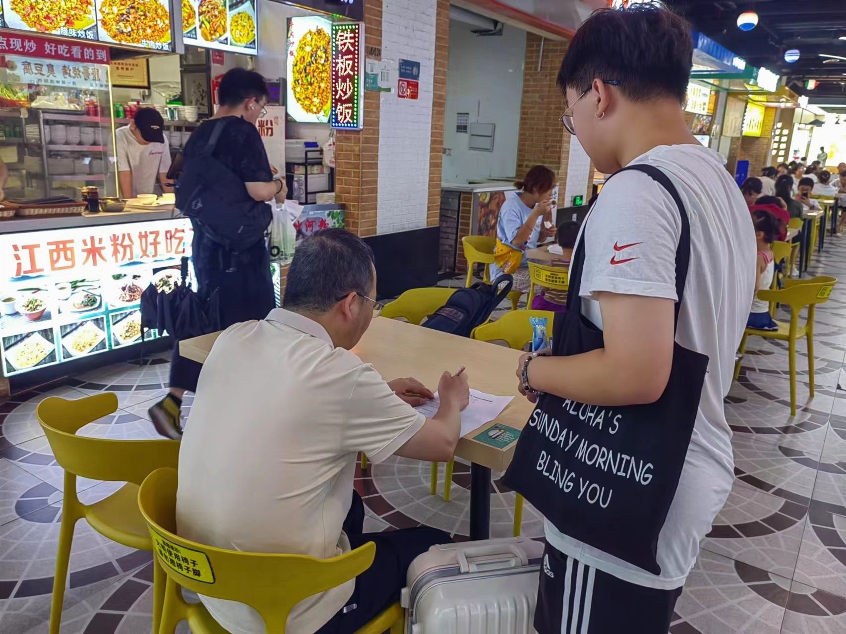 在调查评估结束后,“健康尚先锋队”对小吃街各个年龄段的消费者展开了线下的问卷调查及小礼品发放。问卷内容涵盖消费者的口味偏好、消费习惯、对小吃街的期望和意见,以及商家的经营状况、产品特色、服务质量等方面,让消费者们从各个维度综合评价小吃街的经营状况。