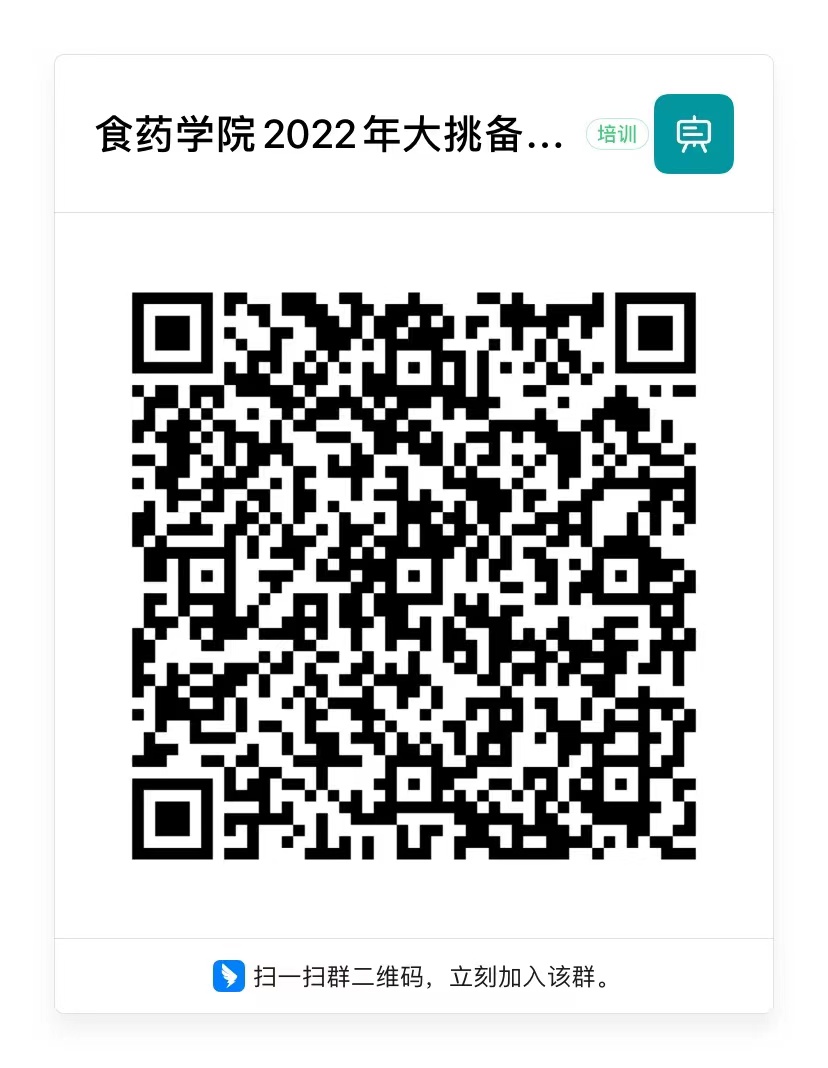 4.即日起至10月28日为学院项目排摸阶段,请预申报本次竞赛的师生加入“食药学院2022年大挑备赛群”(钉钉群),后续相关通知问题等将在群内发布。