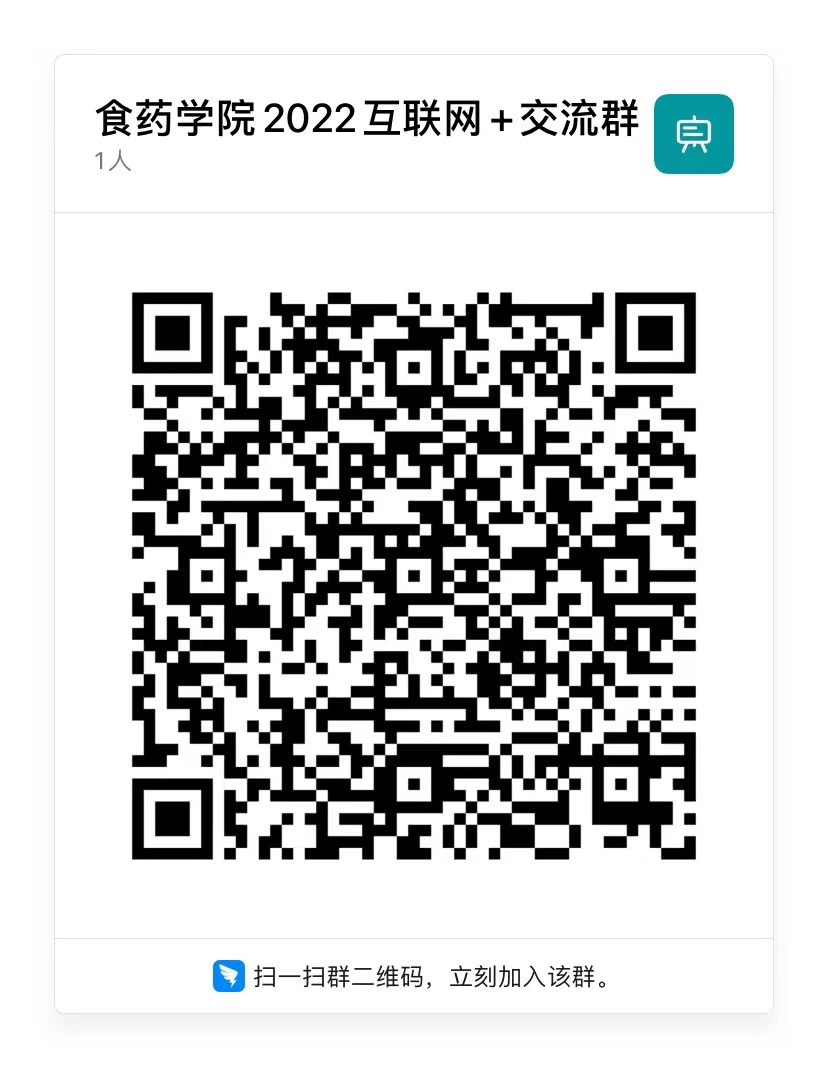 2.为方便师生项目备赛,学院特建立“食药学院2022互联网+交流群”,详见二维码,可扫描添加。