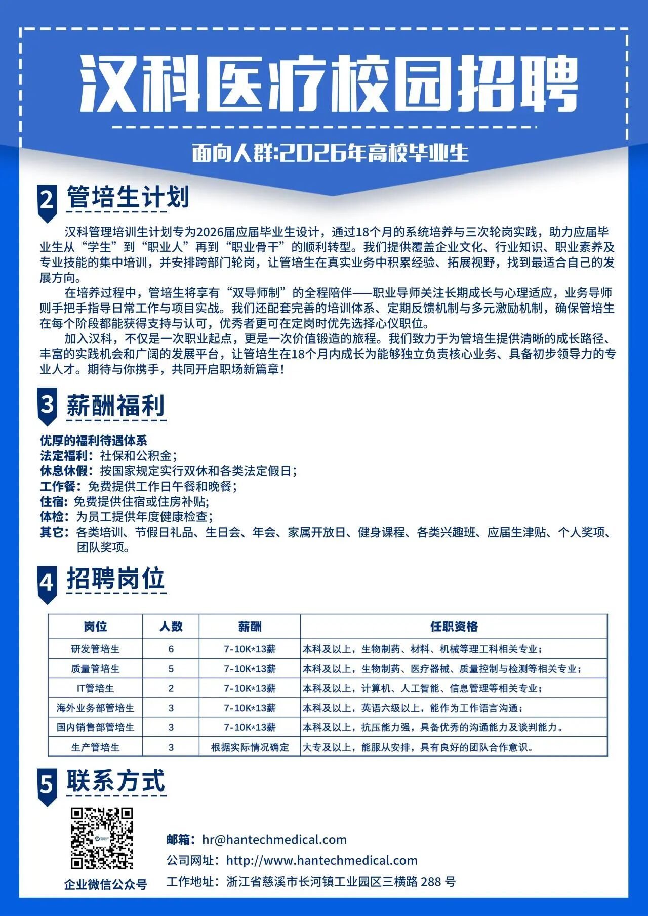 汉科医疗器械 | 2026年校园招聘简章