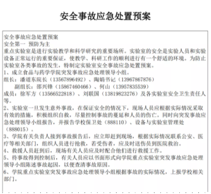 针对可能出现的实验室安全状况,我们提前做好了各类预案准备,明确处理方紧急联系人等,做到有备无患。